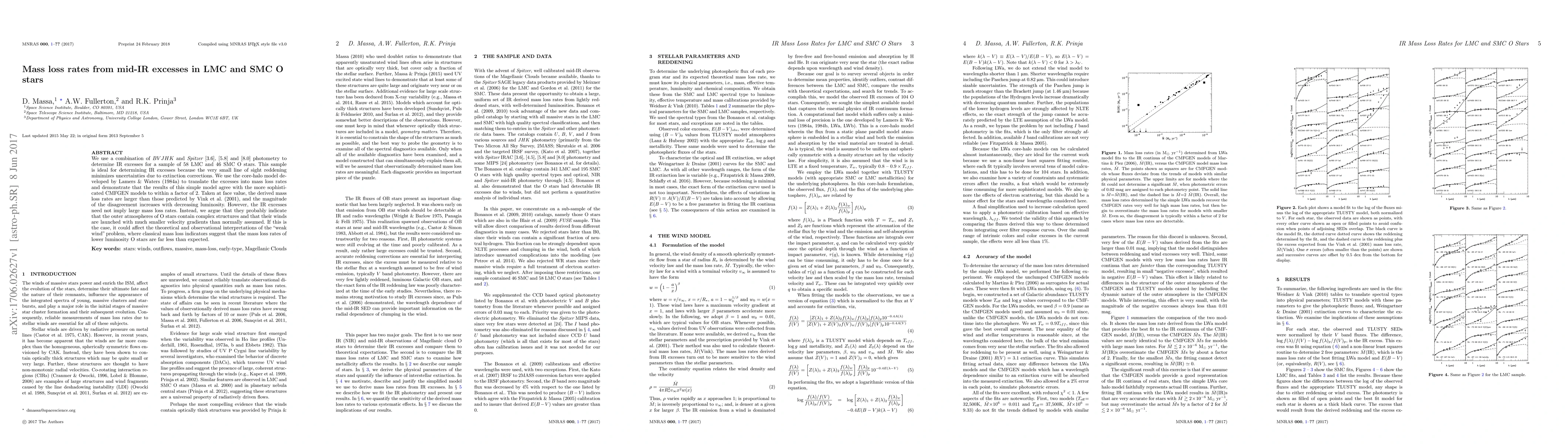 This study estimates mass loss rates from mid-IR excesses in O stars of the Large Magellanic Cloud (LMC) and Small Magellanic Cloud (SMC), finding rates that could indicate complex atmospheric structures rather than large-scale mass loss.