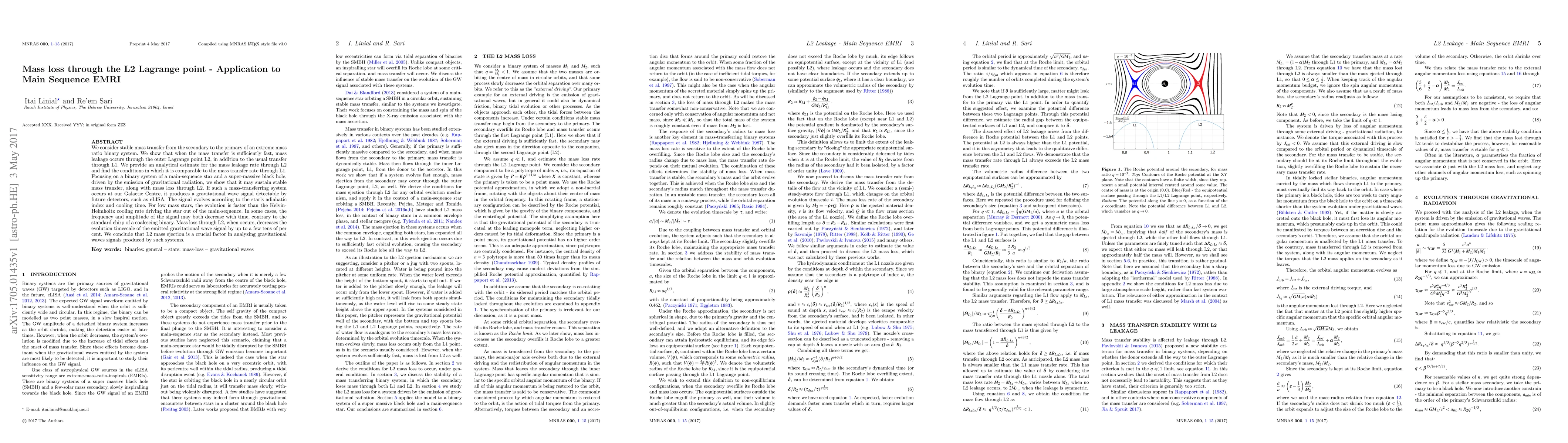 We consider stable mass transfer from the secondary to the primary of an extreme mass ratio binary system. We show that when the mass transfer is sufficiently fast, mass leakage occurs through the outer Lagrange point L2, in addition to the usual transfer through L1. We provide an analytical estimate for the mass leakage rate through L2 and find the conditions in which it is comparable to the mass transfer rate through L1. Focusing on a binary system of a main-sequence star and a super-massive black hole, driven by the emission of gravitational radiation, we show that it may sustain stable mass transfer, along with mass loss through L2. If such a mass-transferring system occurs at our Galactic Centre, it produces a gravitational wave signal detectable by future detectors, such as eLISA. The signal evolves according to the star's adiabatic index and cooling time. For low mass stars, the evolution is faster than the Kelvin-Helmholtz cooling rate driving the star out of the main-sequence. In some cases, the frequency and amplitude of the signal may both decrease with time, contrary to the standard chirp of a coalescing binary. Mass loss through L2, when occurs, decreases the evolution timescale of the emitted gravitational wave signal by up to a few tens of per cent. We conclude that L2 mass ejection is a crucial factor in analyzing gravitational waves signals produced by such systems.