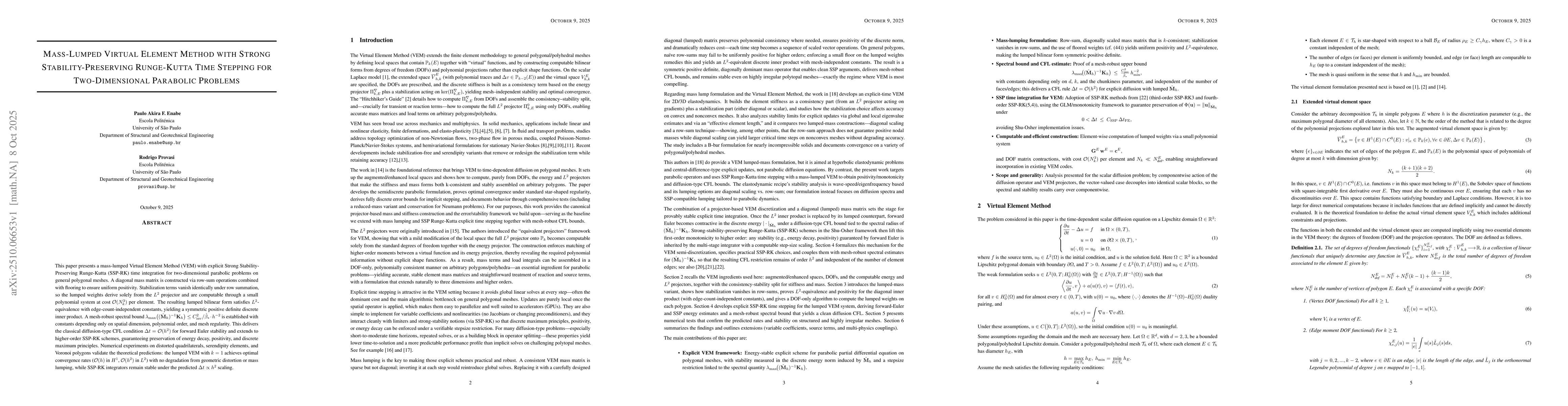 This work presents the first comprehensive stability analysis for VEM-based parabolic PDE solvers using SSP Runge-Kutta time integration, combining geometric flexibility with temporal stability guarantees.