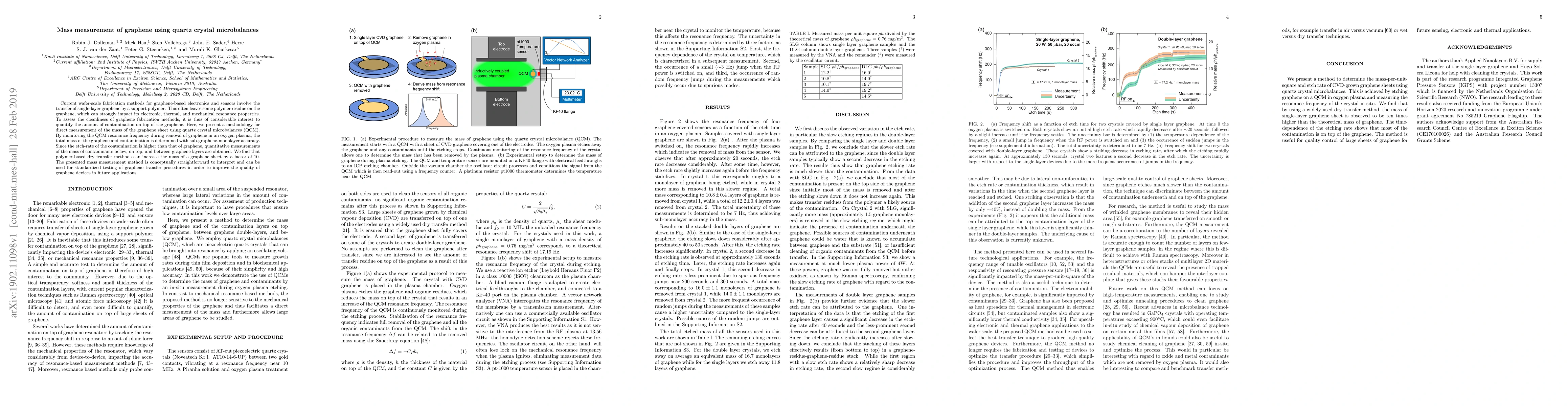 Current wafer-scale fabrication methods for graphene-based electronics and sensors involve the transfer of single-layer graphene by a support polymer. This often leaves some polymer residue on the graphene, which can strongly impact its electronic, thermal, and mechanical resonance properties. To assess the cleanliness of graphene fabrication methods, it is thus of considerable interest to quantify the amount of contamination on top of the graphene. Here, we present a methodology for direct measurement of the mass of the graphene sheet using quartz crystal microbalances (QCM). By monitoring the QCM resonance frequency during removal of graphene in an oxygen plasma, the total mass of the graphene and contamination is determined with sub-graphene-monolayer accuracy. Since the etch-rate of the contamination is higher than that of graphene, quantitative measurements of the mass of contaminants below, on top, and between graphene layers are obtained. We find that polymer-based dry transfer methods can increase the mass of a graphene sheet by a factor of 10. The presented mass measurement method is conceptually straightforward to interpret and can be used for standardized testing of graphene transfer procedures in order to improve the quality of graphene devices in future applications.