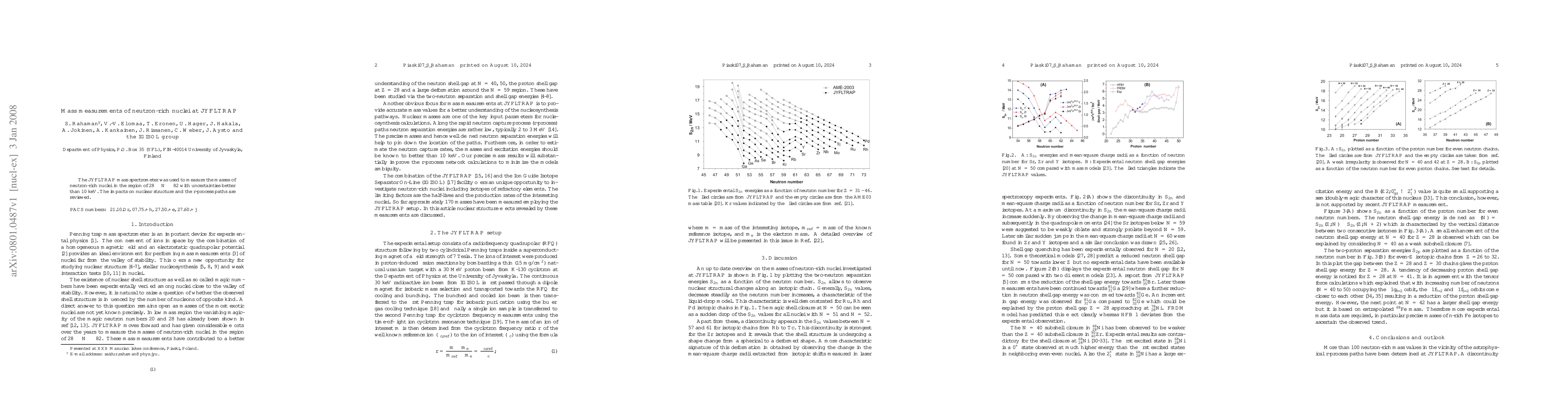 The JYFLTRAP mass spectrometer accurately measured masses of neutron-rich nuclei from N=28 to N=82 with uncertainties less than 10 keV, impacting nuclear structure understanding and r-process path analysis.