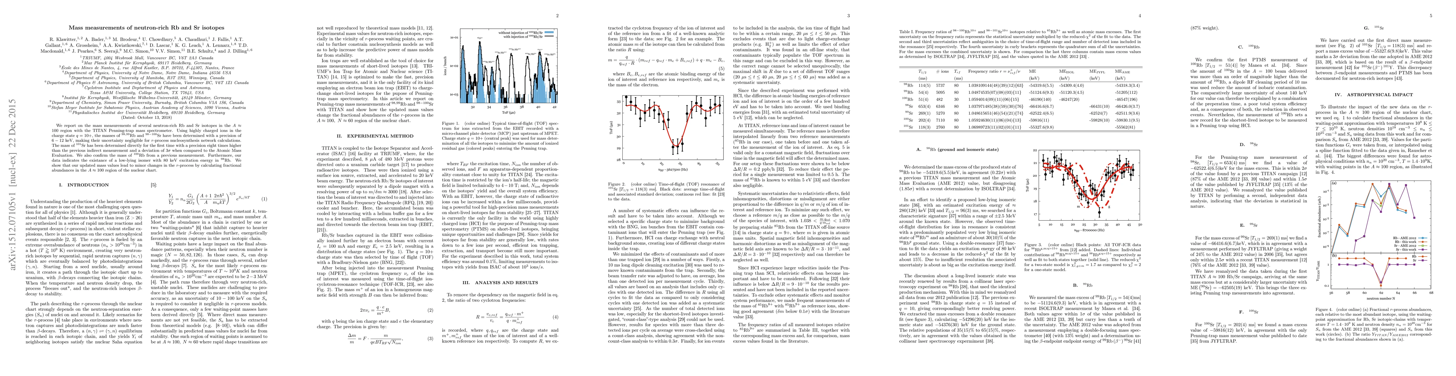 Researchers have measured the masses of neutron-rich Rb and Sr isotopes with high precision, revealing new insights into their existence and behavior in the r-process nucleosynthesis network.