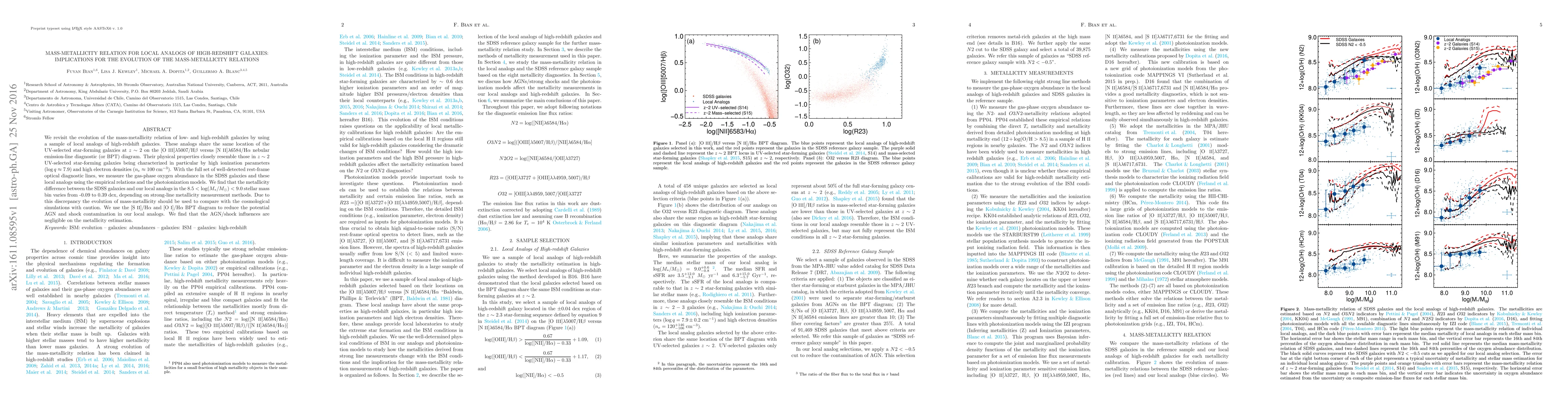 This paper examines the mass-metallicity relation of local galaxies that mimic high-redshift star-forming galaxies, finding a metallicity discrepancy that complicates comparisons with cosmological simulations. The study concludes that AGN/shock influences are minimal in the metallicity estimations.