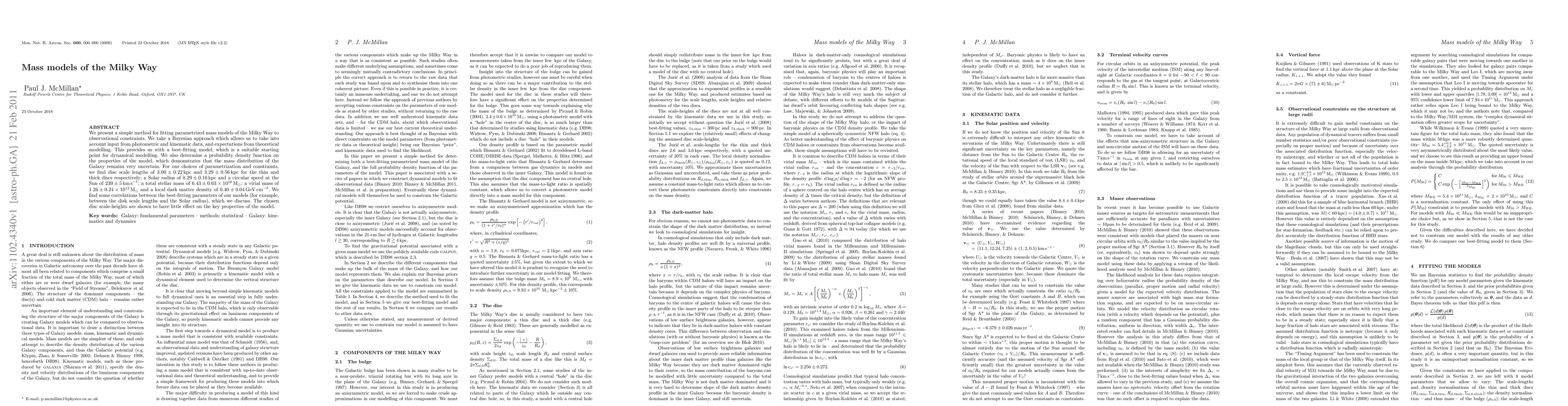 This study uses a Bayesian approach to create a best-fitting mass model of the Milky Way, finding key properties such as disc scale lengths, Solar radius, and total stellar mass with some correlations between parameters.