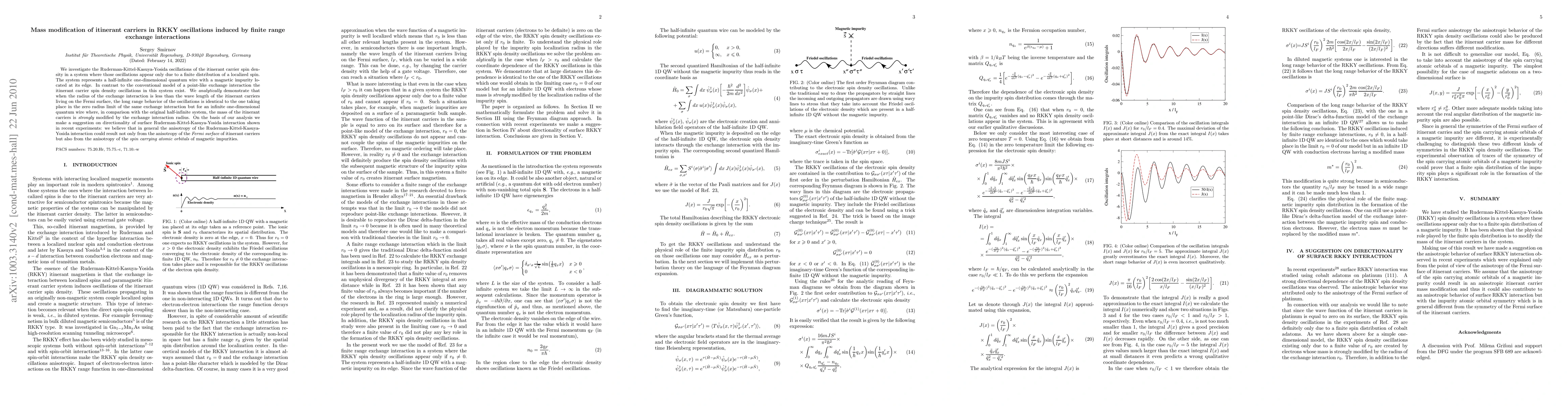 This paper investigates RKKY oscillations in a one-dimensional quantum wire with a magnetic impurity, demonstrating that itinerant carrier spin density oscillations occur due to finite range exchange interactions. It analytically shows that the mass of itinerant carriers is strongly modified by the interaction radius, suggesting that RKKY anisotropy may arise from both Fermi surface and spin orbital anisotropy.
