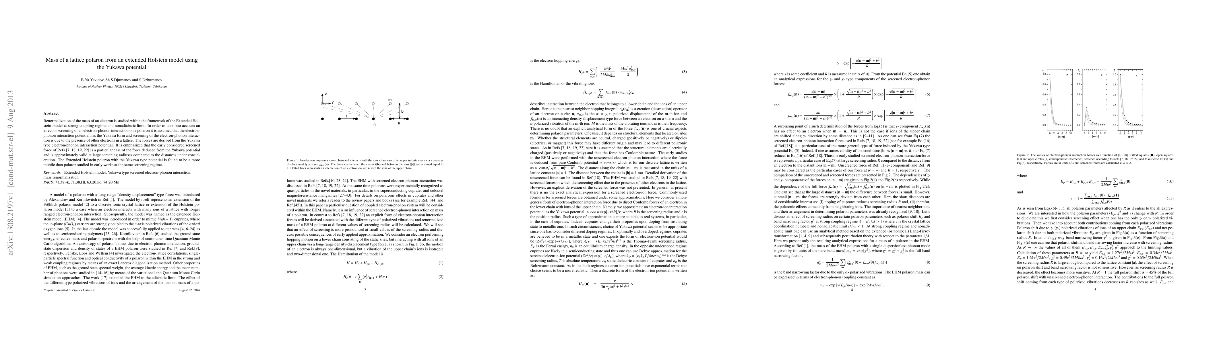 This research investigates the mass renormalization of an electron in the Extended Holstein model under strong coupling and nonadiabatic conditions using a Yukawa potential to describe electron-phonon interactions. The study finds that the resulting polaron exhibits greater mobility compared to earlier models, especially when considering the effect of screening by other electrons in the lattice.