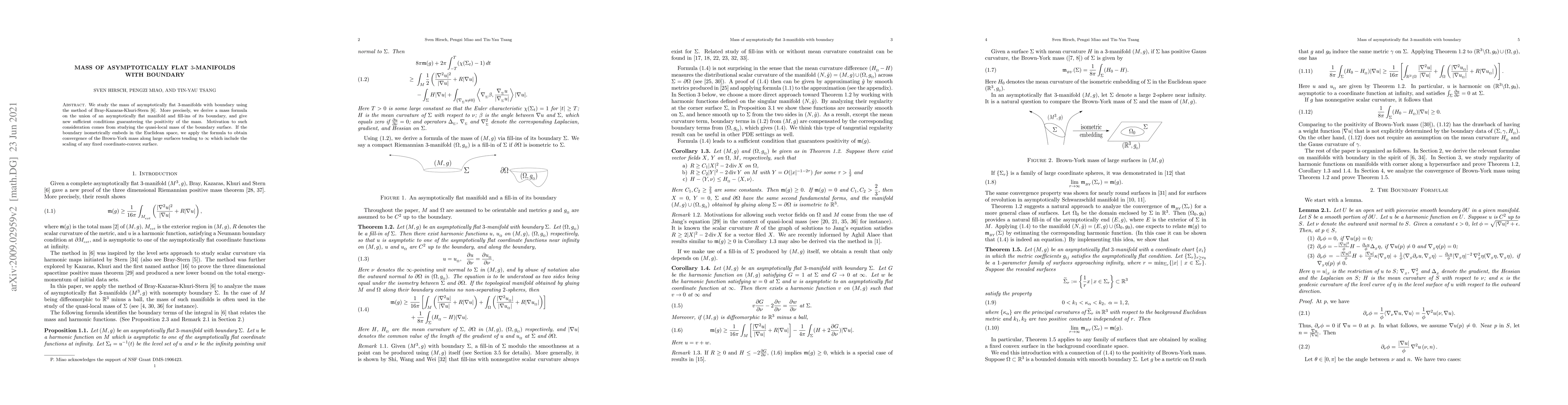 We study the mass of asymptotically flat $3$-manifolds with boundary using the method of Bray-Kazaras-Khuri-Stern. More precisely, we derive a mass formula on the union of an asymptotically flat manifold and fill-ins of its boundary, and give new sufficient conditions guaranteeing the positivity of the mass. Motivation to such consideration comes from studying the quasi-local mass of the boundary surface. If the boundary isometrically embeds in the Euclidean space, we apply the formula to obtain convergence of the Brown-York mass along large surfaces tending to $\infty$ which include the scaling of any fixed coordinate-convex surface.