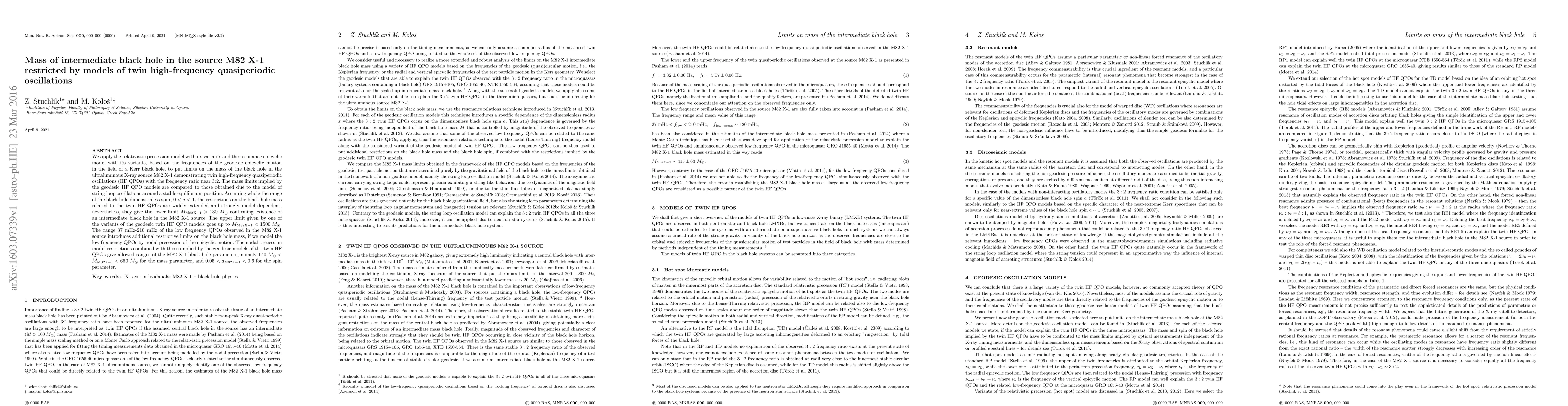 the frequency ratio near 3:2. The mass limits implied by the geodesic HF QPO