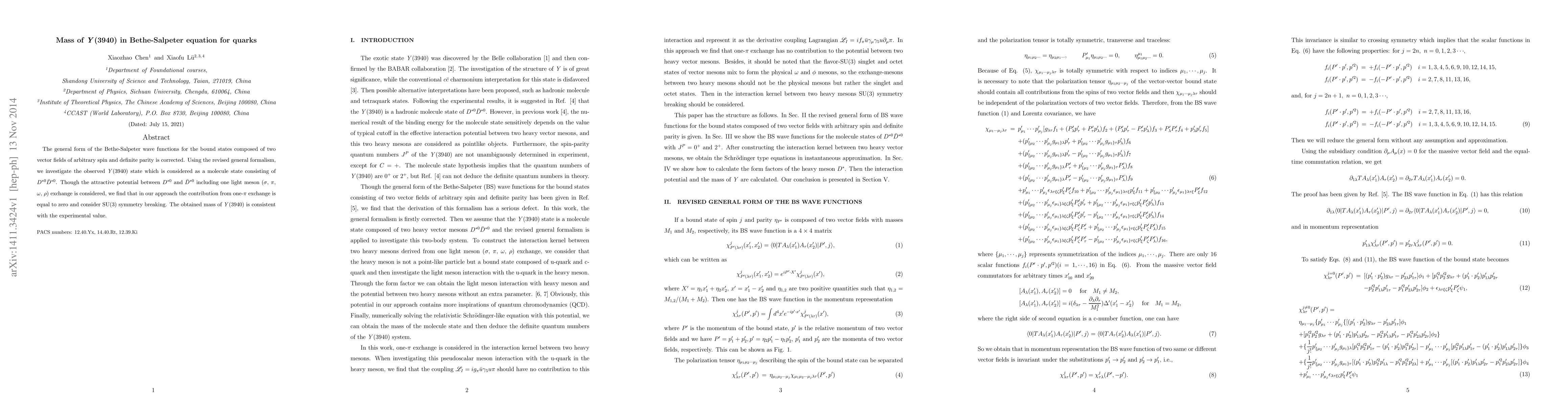 Researchers updated a mathematical model to predict the mass of the Y(3940) particle, finding a value consistent with experimental data after considering potential exchange mechanisms and SU(3) symmetry breaking.