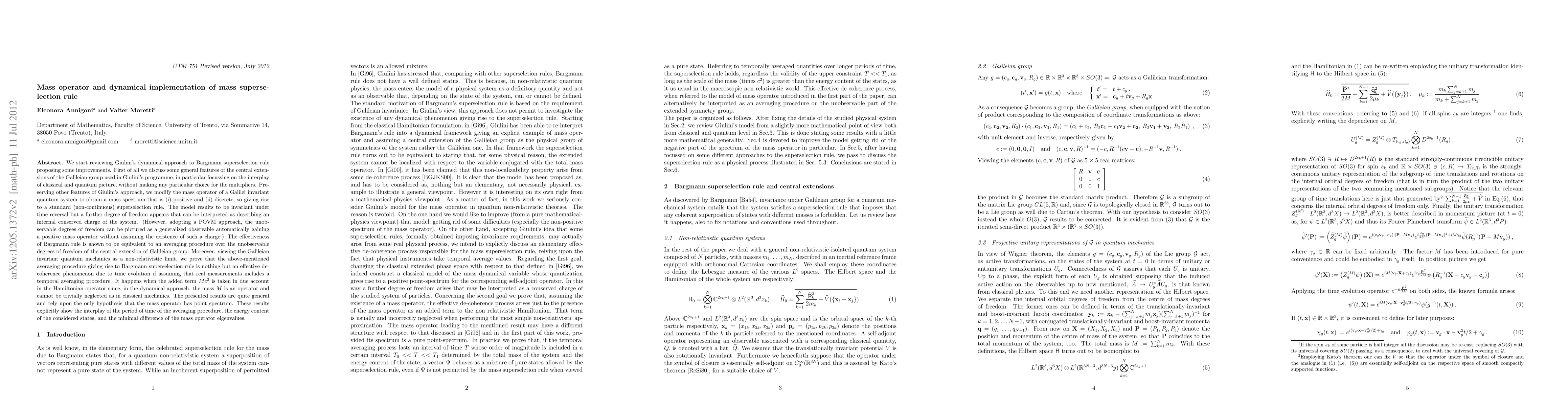 This paper proposes improvements to Giulini's dynamical approach to the Bargmann superselection rule by modifying the mass operator to ensure a positive and discrete mass spectrum, leading to a standard superselection rule. The study highlights the equivalence of the Bargmann rule to an averaging procedure over unobservable degrees of freedom, demonstrating it as an effective de-coherence phenomenon due to time evolution.