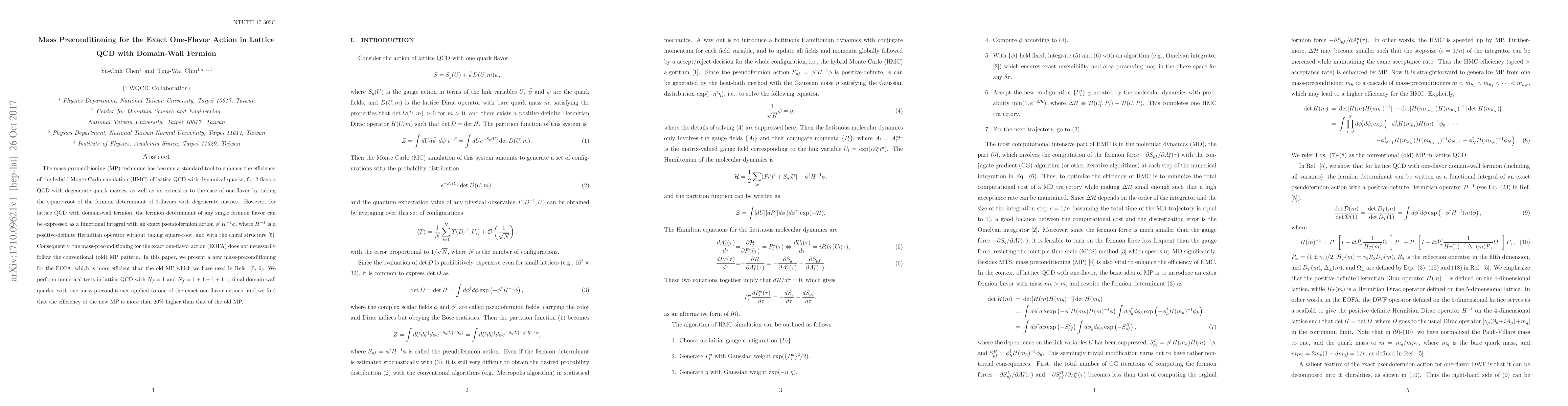 The mass-preconditioning (MP) technique has become a standard tool to enhance the efficiency of the hybrid Monte-Carlo simulation (HMC) of lattice QCD with dynamical quarks, for 2-flavors QCD with degenerate quark masses, as well as its extension to the case of one-flavor by taking the square-root of the fermion determinant of 2-flavors with degenerate masses. However, for lattice QCD with domain-wall fermion, the fermion determinant of any single fermion flavor can be expressed as a functional integral with an exact pseudofermion action $ \phi^\dagger H^{-1} \phi $, where $ H^{-1} $ is a positive-definite Hermitian operator without taking square-root, and with the chiral structure \cite{Chen:2014hyy}. Consequently, the mass-preconditioning for the exact one-flavor action (EOFA) does not necessarily follow the conventional (old) MP pattern. In this paper, we present a new mass-preconditioning for the EOFA, which is more efficient than the old MP which we have used in Refs. \cite{Chen:2014hyy,Chen:2014bbc}. We perform numerical tests in lattice QCD with $ N_f = 1 $ and $ N_f = 1+1+1+1 $ optimal domain-wall quarks, with one mass-preconditioner applied to one of the exact one-flavor actions, and we find that the efficiency of the new MP is more than 20\% higher than that of the old MP.