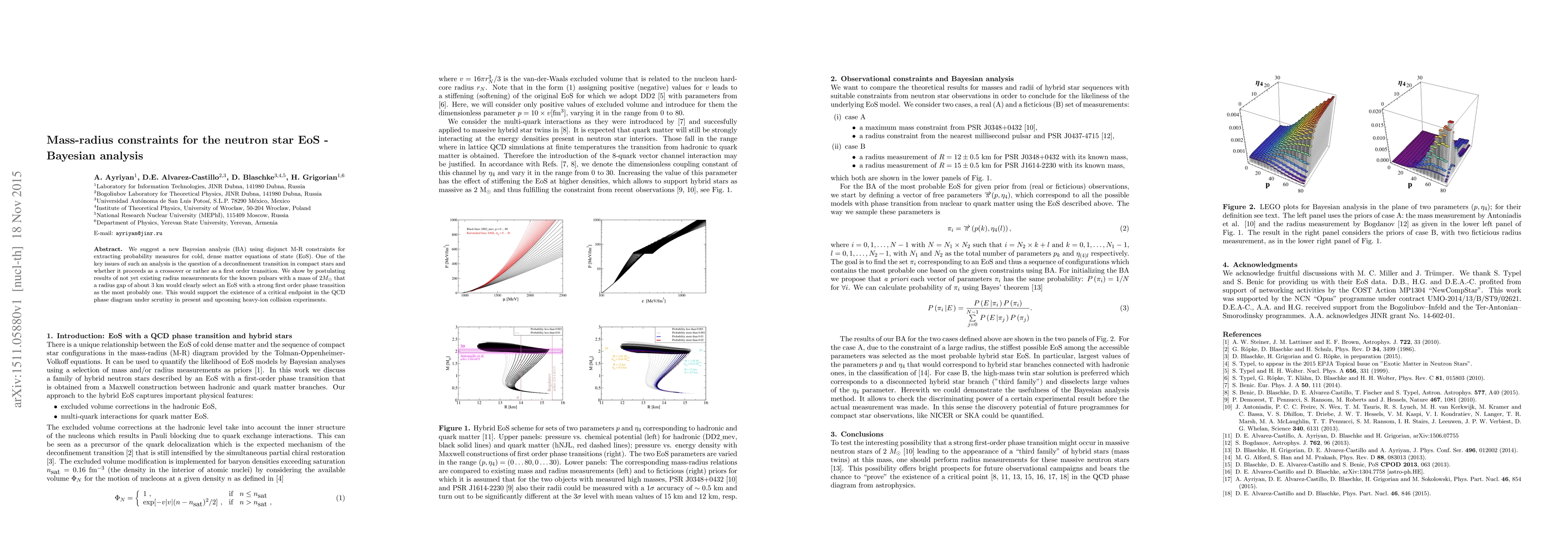 This paper proposes a new Bayesian analysis to extract probability measures for neutron star equations of state (EoS) using mass-radius constraints. It suggests that a radius gap of about 3 km in $2M_\odot$ pulsars would favor an EoS with a strong first-order phase transition, supporting the existence of a critical endpoint in the QCD phase diagram.