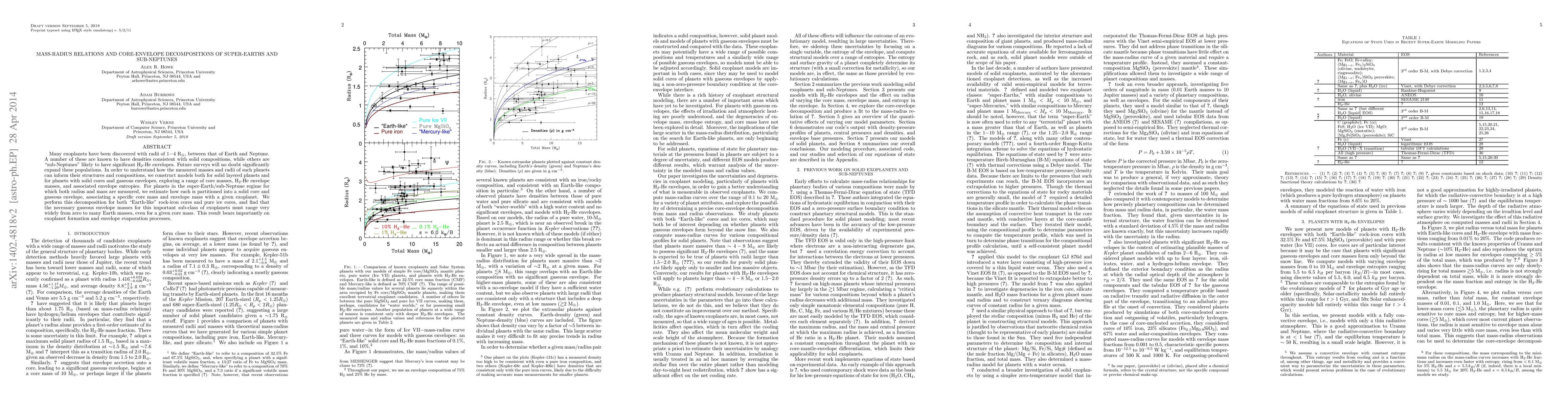 This paper investigates the mass-radius relationships and internal structure of super-Earths and sub-Neptunes, modeling both solid-layered and core-envelope compositions. It finds that the necessary gaseous envelope masses for these exoplanets vary significantly, impacting our understanding of their formation and atmospheric loss processes.