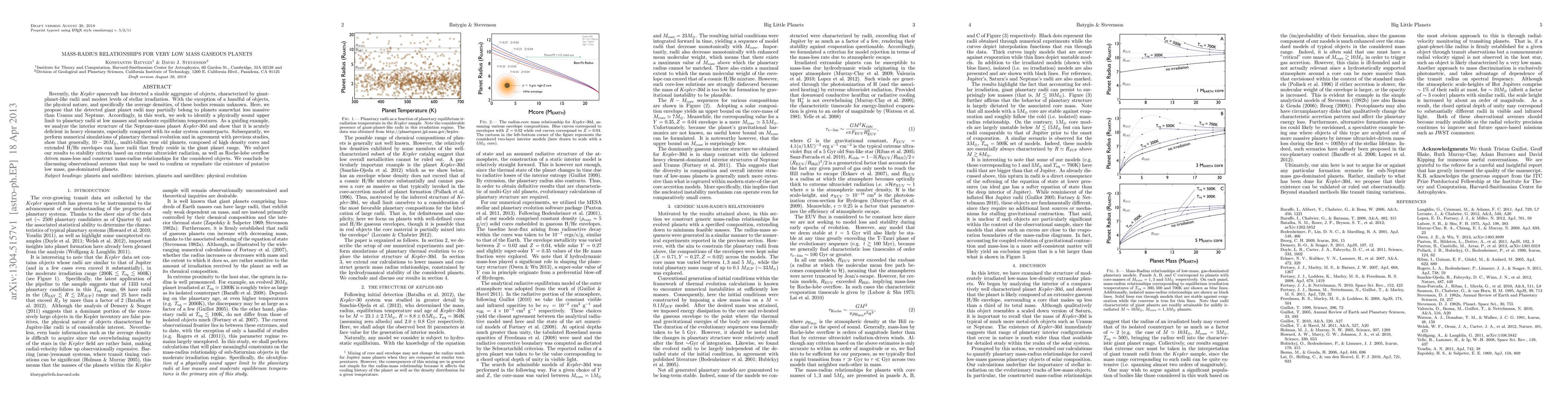 This paper investigates the mass-radius relationships for very low mass gaseous planets, proposing that some detected giant-planet-sized objects may actually be less massive than Uranus and Neptune. The study uses numerical simulations to show that planets with 10-20 Earth masses can have giant planet radii due to high-density cores and extended H/He envelopes, and discusses observational methods to confirm the existence of such low mass, gas-dominated planets.