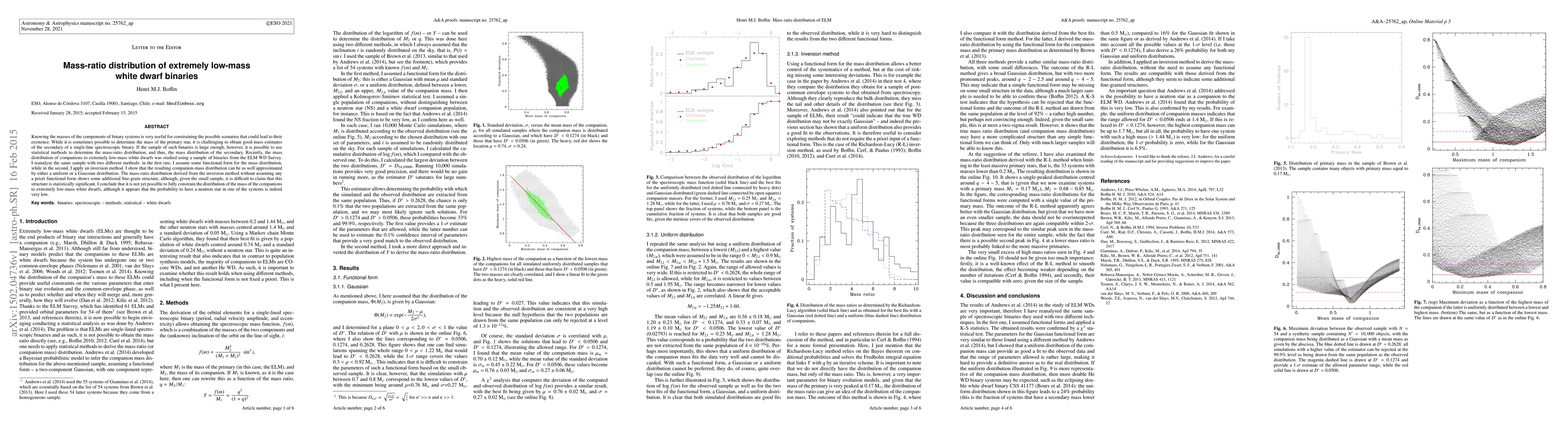 Knowing the masses of the components of binary systems is very useful to constrain the possible scenarios that could lead to their existence. While it is sometimes possible to determine the mass of the primary star, for single-lined spectroscopic binaries it is not trivial to have good estimates of the mass of the secondary. If a large enough sample of such binaries is available, it is possible, however, to use statistical methods to determine the mass ratio distribution, and thus, the secondary mass distribution. Recently, Andrews et al. (2014) studied the mass distribution of companions to extremely low-mass white dwarfs, using a sample of binaries from the ELM WD Survey. I reanalyse the same sample, using two different methods: in the first one, I assume some functional form for the mass distribution, while in the second, I apply an inversion method. I show that the resulting companion-mass distribution can be as well approximated by either a uniform distribution or a Gaussian distribution. The mass ratio distribution derived from the inversion method, without assuming any a priori functional form, shows some additional fine-grain structure, although, given the small sample, it is difficult to claim that this structure is statistically significant. I conclude that it is not possible yet to fully constrain the distribution of the mass of the companions to extremely low-mass white dwarfs, although it appears that the probability to have a neutron star in one of the systems is indeed very small.