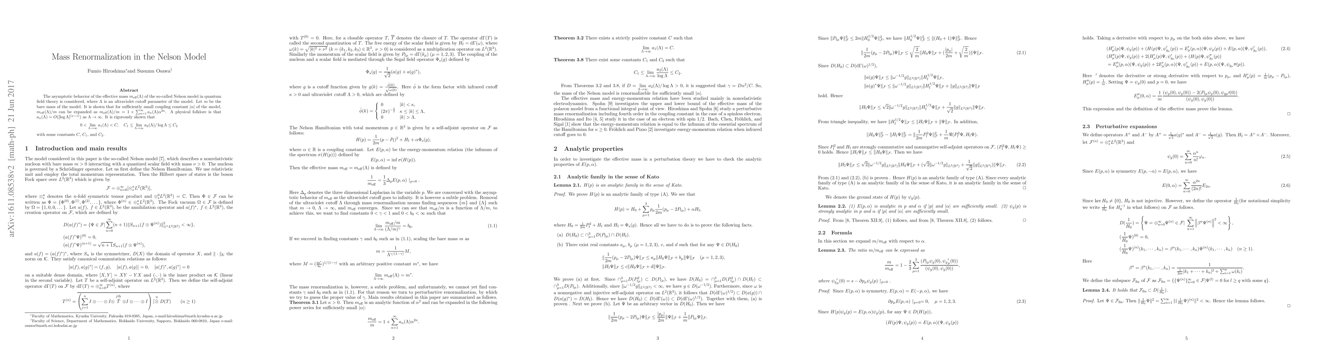 is an ultraviolet cutoff parameter of the model. Let $m$ be the bare mass of