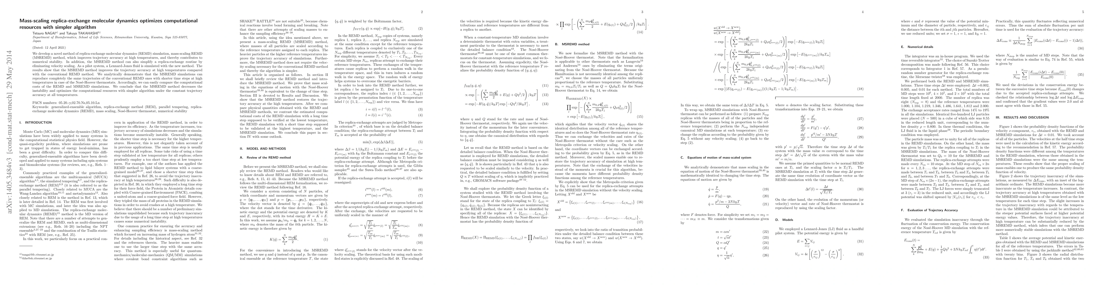 The mass-scaling replica-exchange molecular dynamics (MSREMD) method enhances trajectory accuracy and stability at high temperatures, simplifying the replica-exchange routine by eliminating velocity scaling. Simulations show it optimizes computational resources while maintaining constant trajectory accuracy across temperatures.