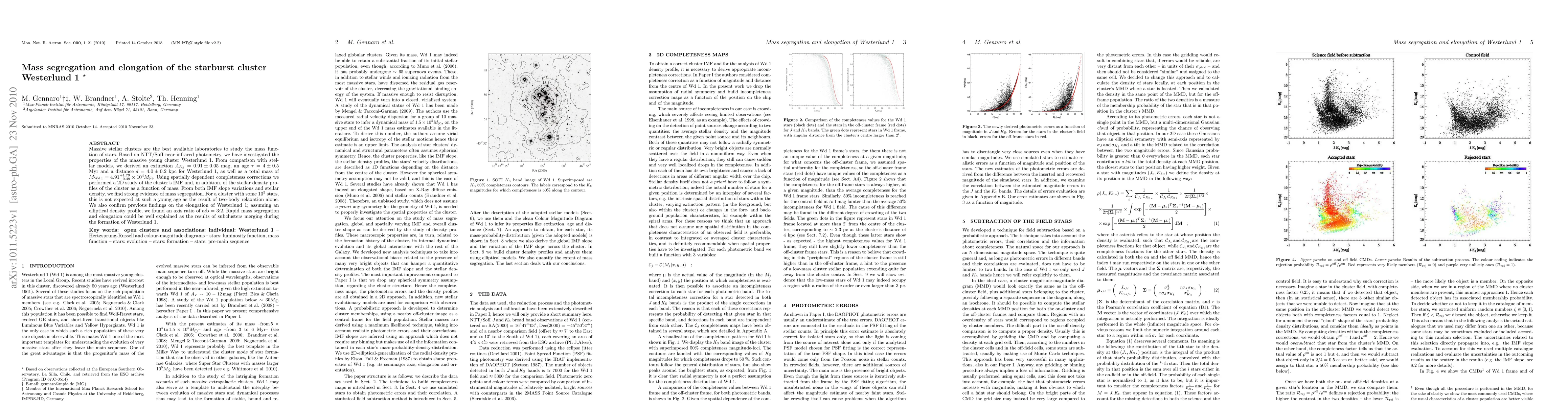 Massive stellar clusters are the best available laboratories to study the mass function of stars. Based on NTT/SofI near-infrared photometry, we have investigated the properties of the massive young cluster Westerlund 1. From comparison with stellar models, we derived an extinction A_{Ks} = 0.91 +/- 0.05 mag, an age \tau = 4 +/- 0.5 Myr and a distance d = 4.0 +/- 0.2 kpc for Westerlund 1, as well as a total mass of M_{Wd1} = 4.91_{-0.49}^{+1.79} x 10^4 M_{sun}. Using spatially dependent completeness corrections we performed a 2D study of the cluster's IMF and, in addition, of the stellar density profiles of the cluster as a function of mass. From both IMF slope variations and stellar density, we find strong evidence of mass segregation. For a cluster with some 10^5 stars, this is not expected at such a young age as the result of two-body relaxation alone. We also confirm previous findings on the elongation of Westerlund 1; assuming an elliptical density profile, we found an axis ratio of a:b = 3:2. Rapid mass segregation and elongation could be well explained as the results of subclusters merging during the formation of Westerlund 1.