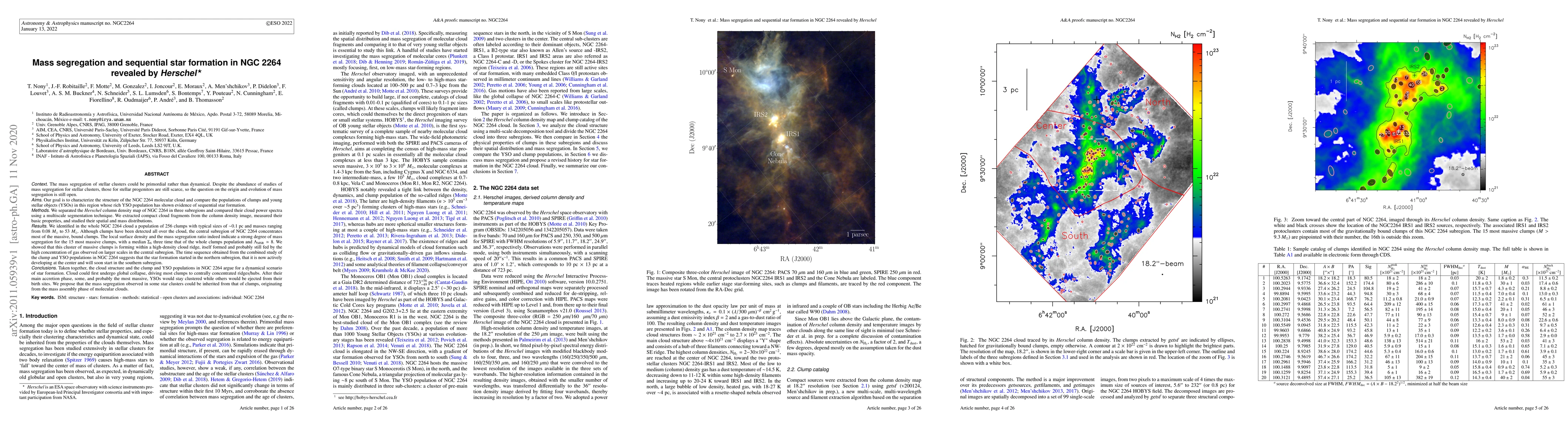 The Herschel study of NGC 2264 reveals significant mass segregation and sequential star formation, with the densest regions concentrating the most massive clumps and indicating a dynamical scenario of star formation. The central subregion shows the highest degree of mass segregation and is currently the most active site of star formation.
