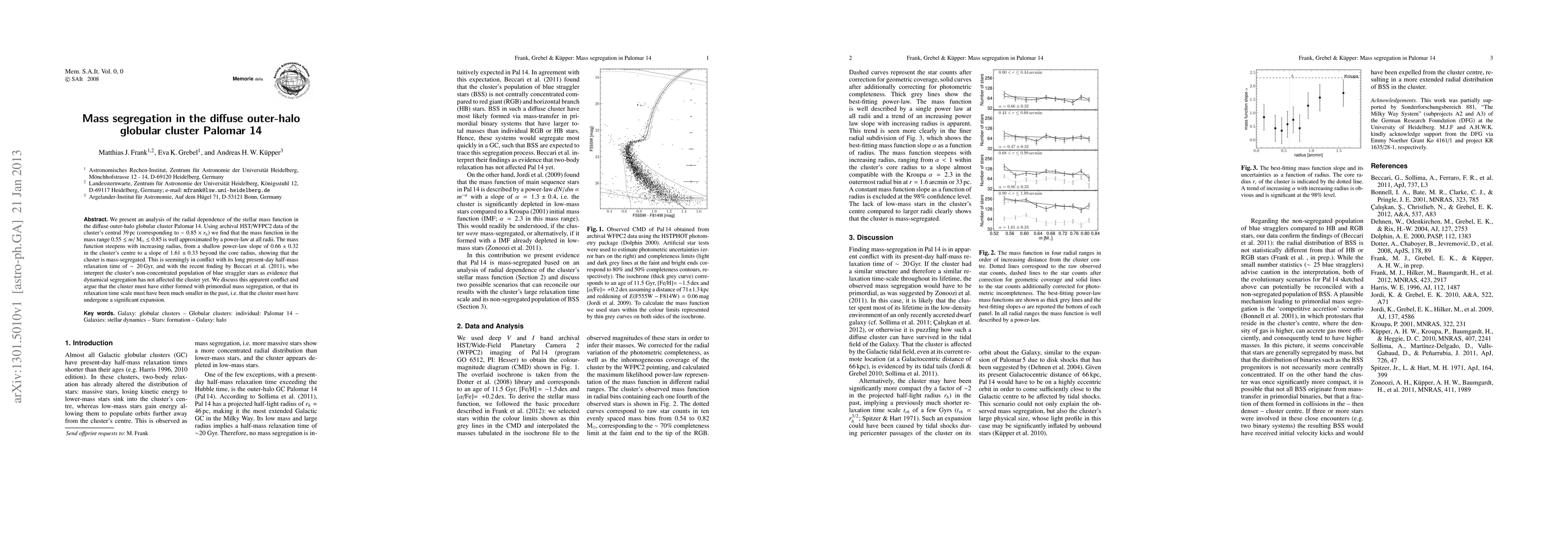 This paper analyzes the radial dependence of the stellar mass function in the globular cluster Palomar 14, finding mass segregation evidenced by a steepening mass function slope with increasing radius. This result conflicts with the cluster's long relaxation time and suggests either primordial mass segregation or significant past expansion.