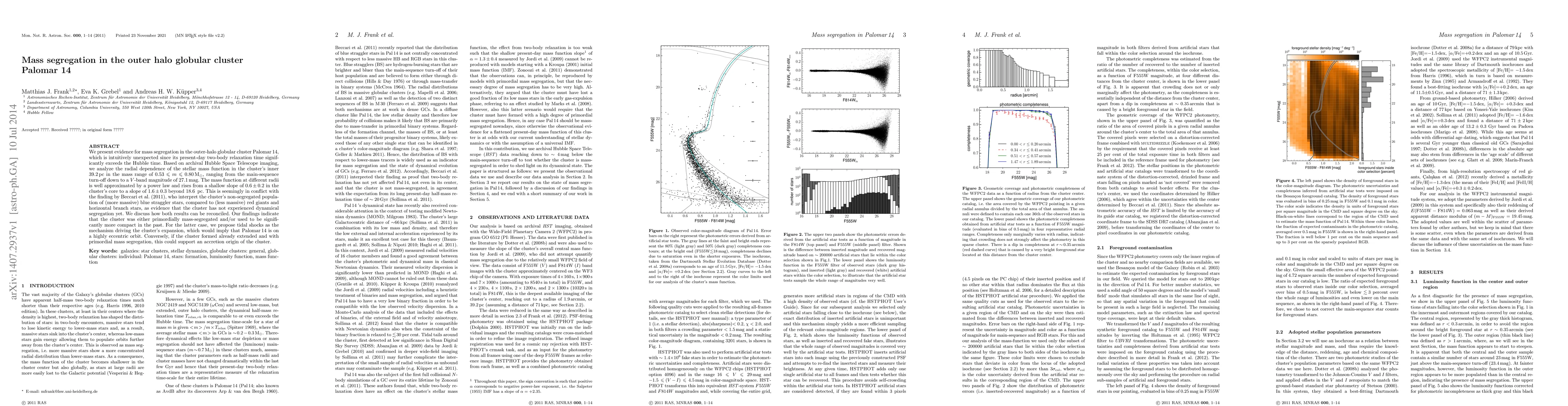 This paper presents evidence for mass segregation in the outer-halo globular cluster Palomar 14, despite its long relaxation time. Analysis of HST imaging shows a steeper mass function slope in the outer regions, suggesting primordial mass segregation or past compactness and expansion via tidal shocks.
