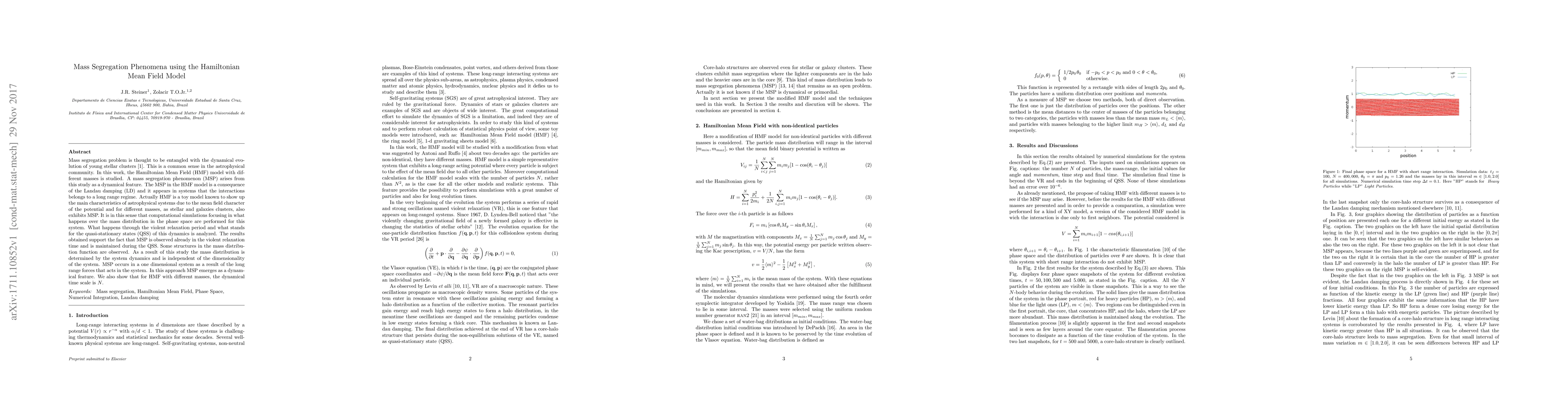 Researchers studied mass segregation phenomena in a Hamiltonian Mean Field model with different masses, finding that it's a dynamical feature emerging from Landau damping and occurring in systems with long-range interactions, regardless of dimensionality.