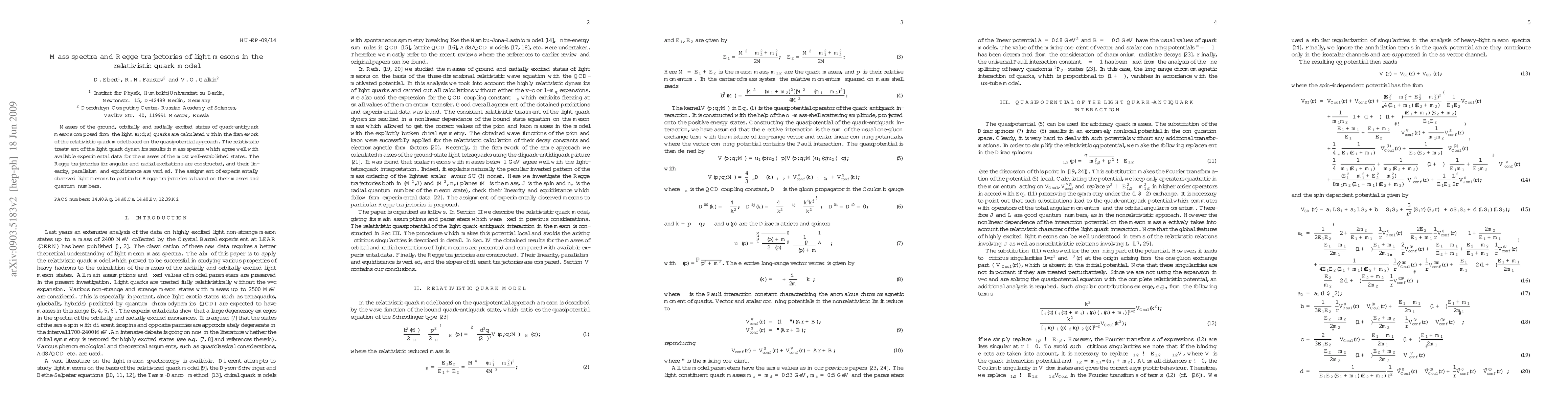 This paper calculates the masses of light mesons using the relativistic quark model, achieving good agreement with experimental data. It also constructs and verifies the linearity of Regge trajectories for these mesons, assigning observed states based on their masses and quantum numbers.