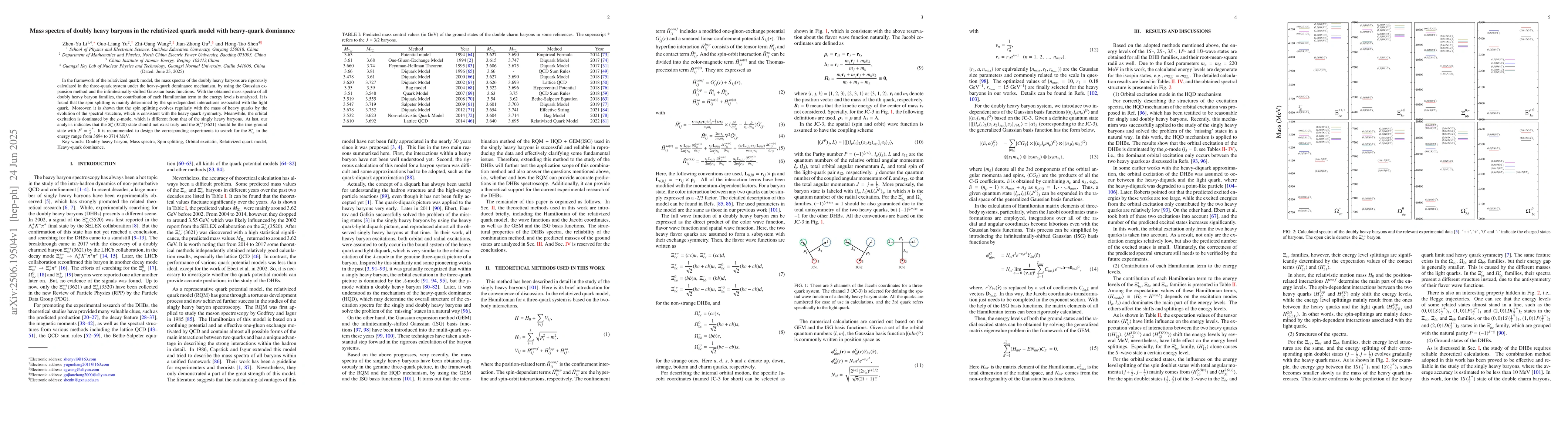 In the framework of the relativized quark model, the mass spectra of the doubly heavy baryons are rigorously calculated in the three-quark system under the heavy-quark dominance mechanism, by using the Gaussian expansion method and the infinitesimally-shifted Gaussian basis functions. With the obtained mass spectra of all doubly heavy baryon families, the contribution of each Hamiltonian term to the energy levels is analyzed. It is found that the spin splitting is mainly determined by the spin-dependent interactions associated with the light quark. Moreover, it is shown that the spin splitting evolves regularly with the mass of heavy quarks by the evolution of the spectral structure, which is consistent with the heavy quark symmetry. Meanwhile, the orbital excitation is dominated by the $\rho$-mode, which is different from that of the singly heavy baryons. At last, our analysis indicates that the $\Xi_{cc}^{+}(3520)$ state should not exist truly and the $\Xi_{cc}^{++}(3621)$ should be the true ground state with $J^{P}$ = $\frac{1}{2}^{+}$. It is recommended to design the corresponding experiments to search for the $\Xi_{cc}^{*}$ in the energy range from 3694 to 3714 MeV.