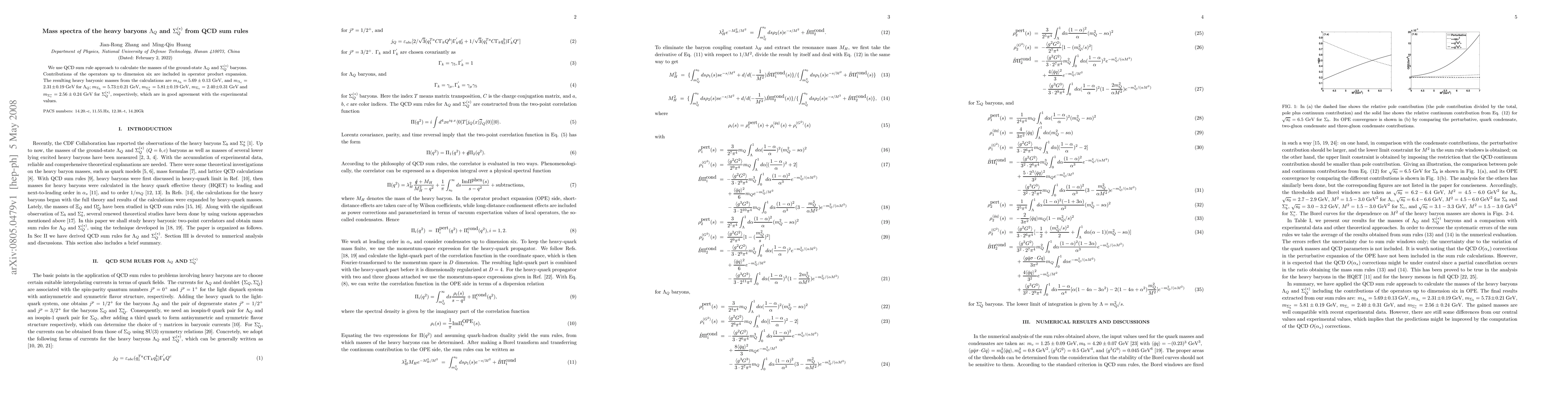 We use QCD sum rule approach to calculate the masses of the ground-state Lambda_Q and Sigma_Q^(*) baryons. Contributions of the operators up to dimension six are included in operator product expansion. The resulting heavy baryonic masses from the calculations are m_{Lambda_b}=5.69 +/- 0.13 GeV, and m_{Lambda_c}=2.31 +/- 0.19 GeV for Lambda_Q; m_{Sigma_b}=5.73 +/- 0.21 GeV, m_{Sigma_b^*}=5.81 +/- 0.19 GeV, m_{Sigma_c}=2.40 +/- 0.31 GeV and m_{Sigma_c^*}=2.56 +/- 0.24 GeV for Sigma_Q^(*), respectively, which are in good agreement with the experimental values.