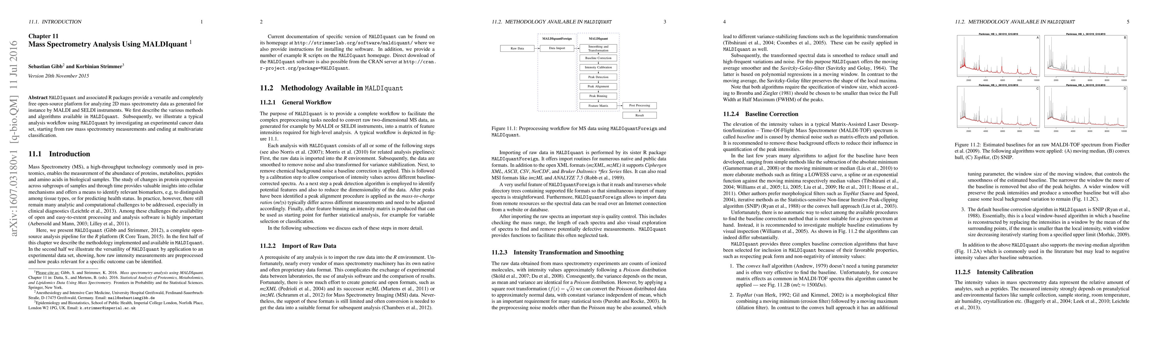 Summary: The paper introduces MALDIquant, an open-source R package for analyzing 2D mass spectrometry data from MALDI and SELDI instruments, detailing its methods and algorithms, and demonstrating its application through a cancer dataset analysis workflow.