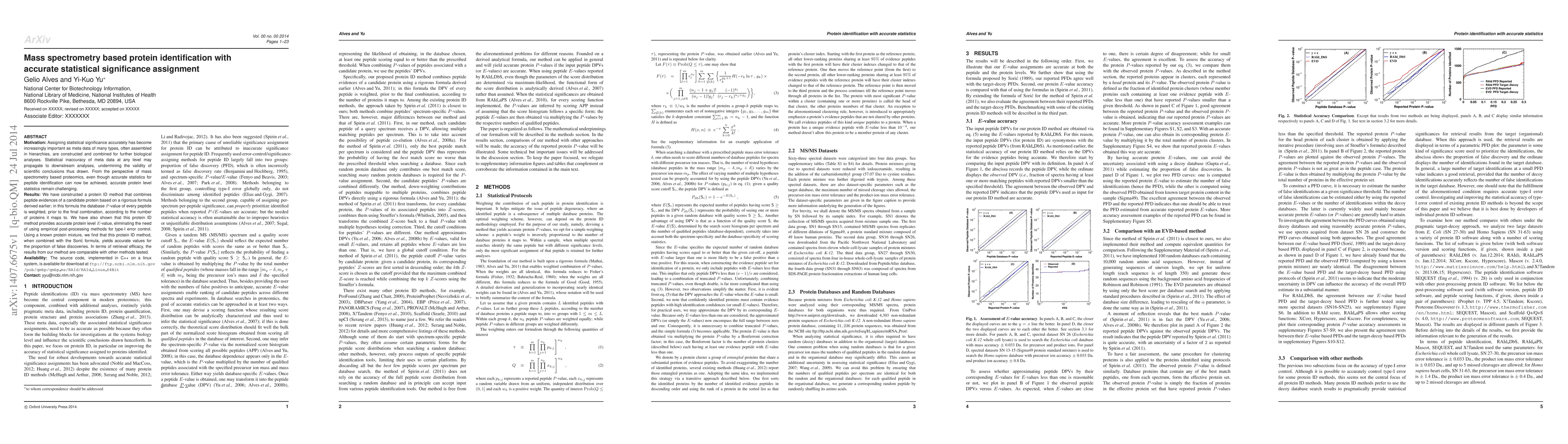 This paper presents a novel method for protein identification in mass spectrometry that accurately assigns statistical significance at the protein level by weighting peptide evidences and combining them rigorously. The method provides accurate protein level E-values and comparable retrieval efficacy, eliminating the need for empirical post-processing. Source code is available for download.