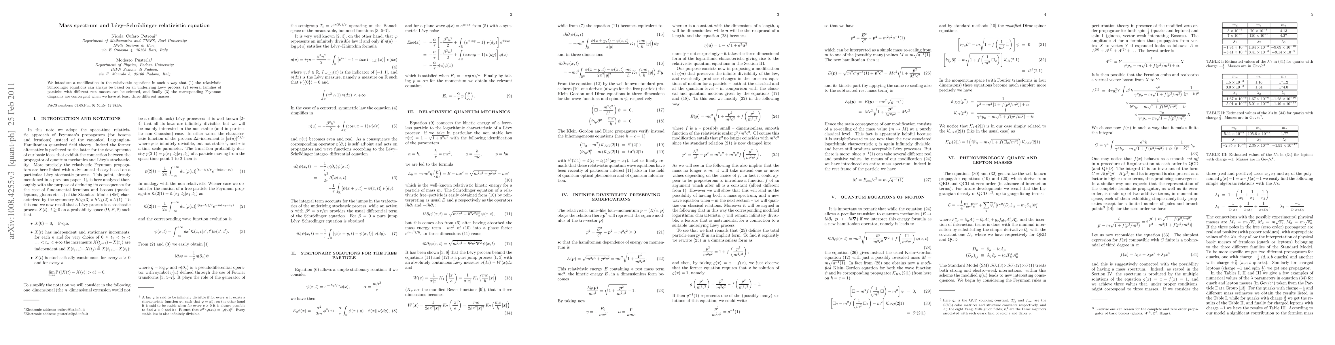 We introduce a modification in the relativistic hamiltonian in such a way that (1) the relativistic Schr\"odinger equations can always be based on an underlying L\'evy process, (2) several families of particles with different rest masses can be selected, and finally (3) the corresponding Feynman diagrams are convergent when we have at least three different masses.