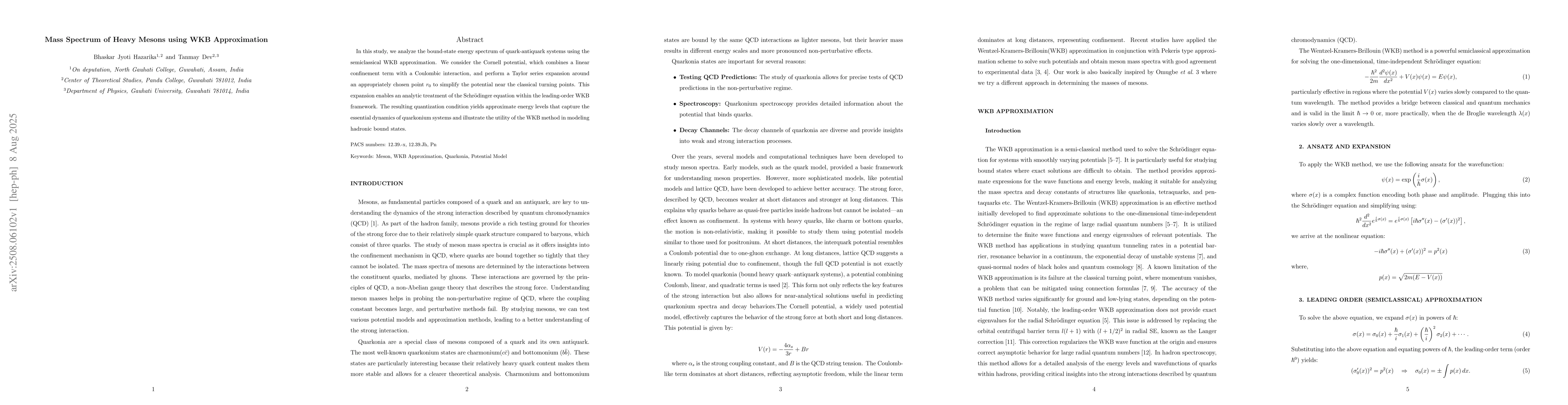 The work introduces an improved approach for modeling meson mass spectra by combining the WKB approximation with a Taylor series expansion, demonstrating its effectiveness for various mesonic systems and validating it against experimental data and other theoretical methods.