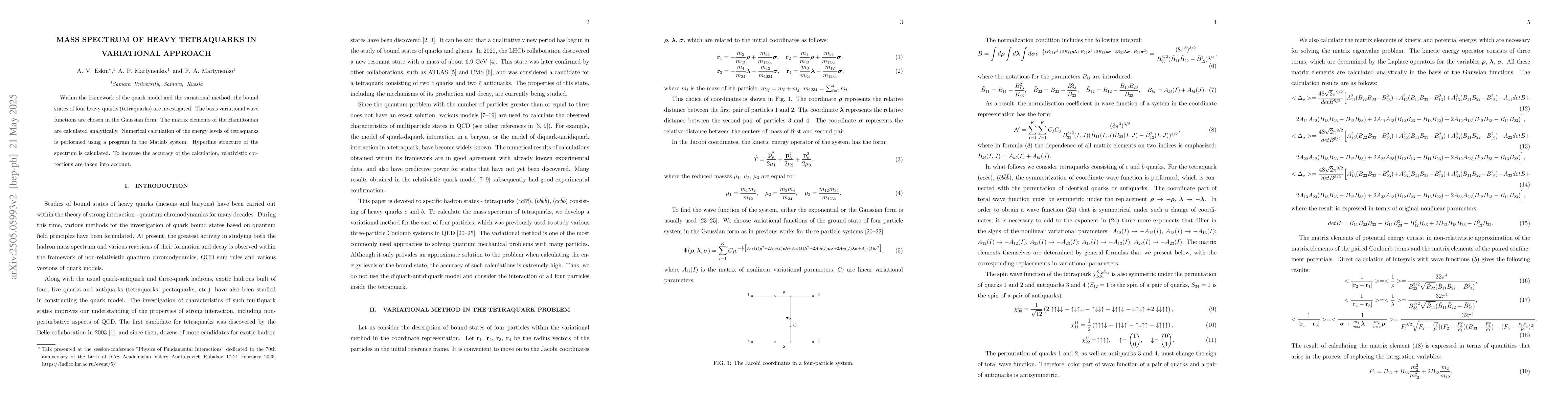 Researchers used a variational approach to study the properties of heavy tetraquarks, finding an accurate description of their mass spectrum with relativistic corrections. The study provides new insights into the strong nuclear force at very small distances.