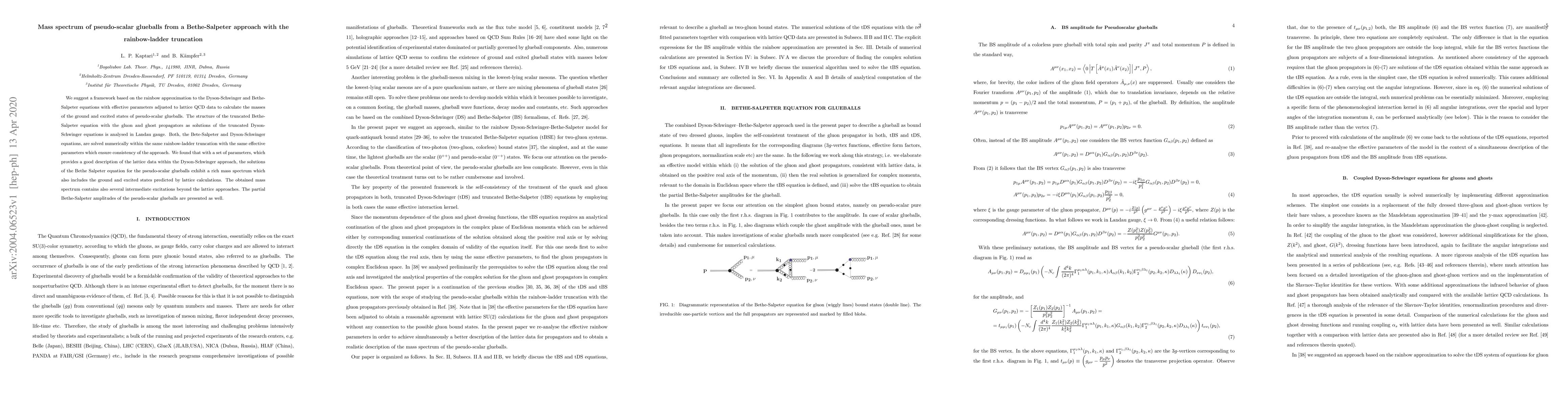 This paper proposes a framework using the rainbow approximation to the Dyson-Schwinger and Bethe-Salpeter equations to calculate pseudo-scalar glueball masses, with parameters adjusted to lattice QCD data. The framework reveals a rich mass spectrum of pseudo-scalar glueballs, including ground and excited states, alongside additional intermediate excitations not predicted by lattice methods.
