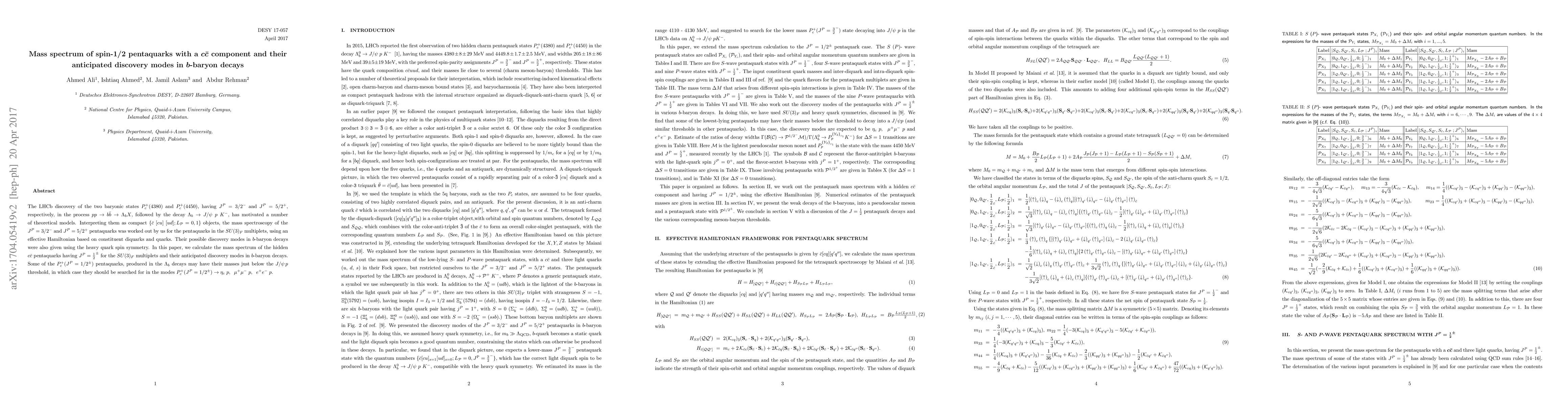 The LHCb discovery of the two baryonic states $P_c^+(4380)$ and $P_c^+(4450)$, having $J^{P}=3/2^-$ and $J^{P}=5/2^+$, respectively, in the process $pp \to b \bar{b} \to \Lambda_b X$, followed by the decay $\Lambda_b \to J/\psi\; p\; K^-$, has motivated a number of theoretical models. Interpreting them as compact $\{\bar{c}\; [c u] \; [ud]; L_{\mathcal{P}}=0,1\}$ objects, the mass spectroscopy of the $J^P=3/2^-$ and $J^P=5/2^+$ pentaquarks was worked out by us for the pentaquarks in the $SU(3)_F$ multiplets, using an effective Hamiltonian based on constituent diquarks and quarks. Their possible discovery modes in $b$-baryon decays were also given using the heavy quark spin symmetry. In this paper, we calculate the mass spectrum of the hidden $c\bar{c}$ pentaquarks having $J^{P}=\frac{1}{2}^\pm$ for the $SU(3)_F$ multiplets and their anticipated discovery modes in $b$-baryon decays. Some of the $P_c^+(J^P=1/2^\pm$) pentaquarks, produced in the $\Lambda_{b}$ decays may have their masses just below the $J/\psi\, p$ threshold, in which case they should be searched for in the modes $ P_c^+(J^P=1/2^\pm) \to \eta_c\; p,\;\; \mu^+ \mu^- \;p,\;\; e^+ e^-\; p$.