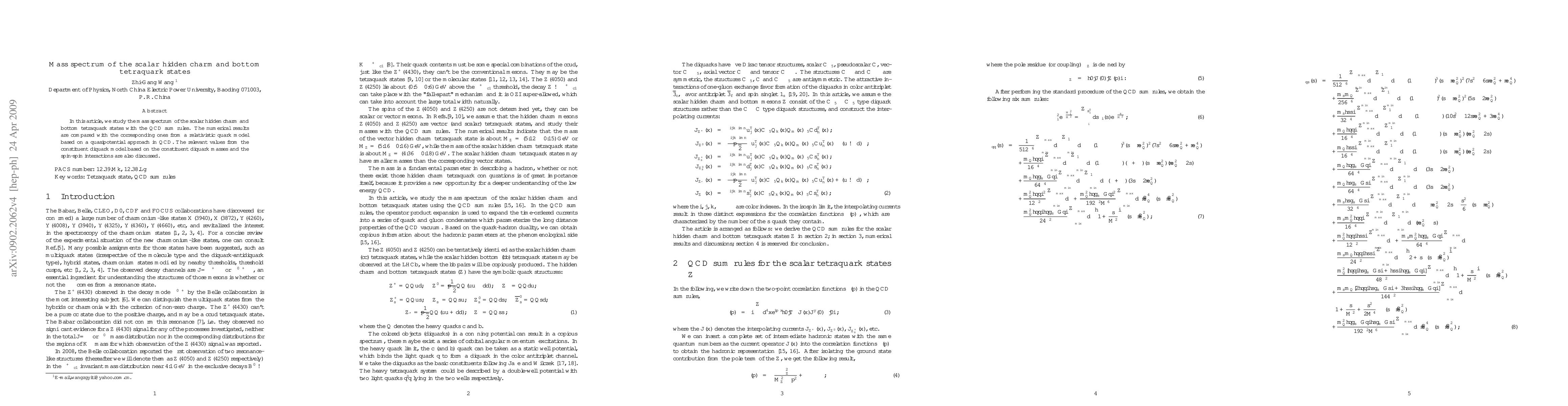 This paper investigates the mass spectrum of scalar hidden charm and bottom tetraquark states using QCD sum rules, comparing results with those from a relativistic quark model and discussing the implications of constituent diquark masses and spin-spin interactions.