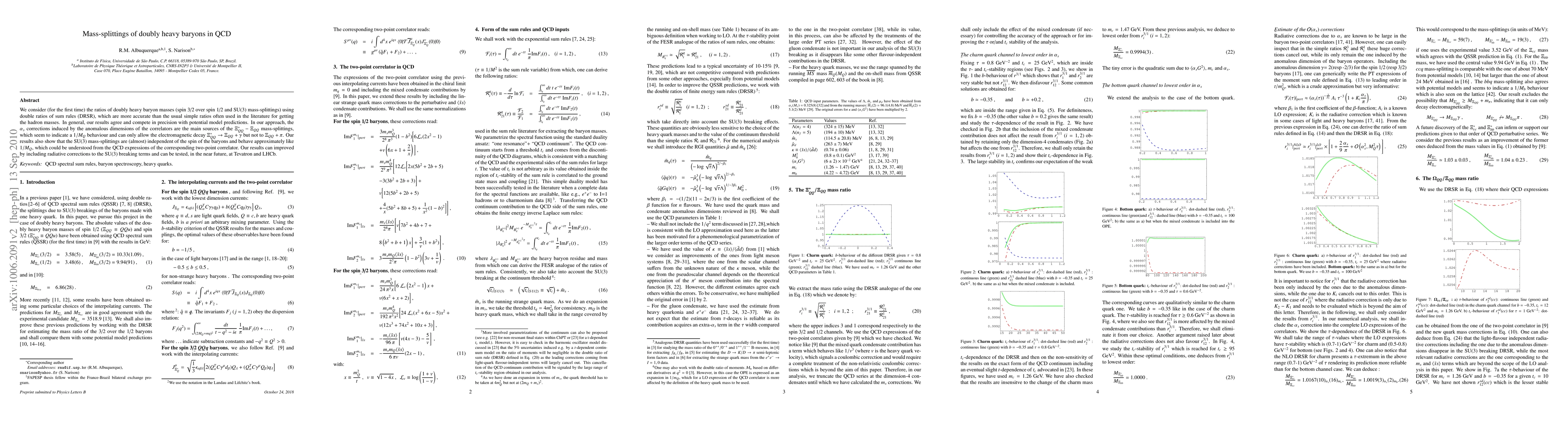This paper investigates the mass-splittings of doubly heavy baryons using double ratios of sum rules (DRSR) to achieve higher accuracy. The study finds that alpha_s corrections and anomalous dimensions are key to understanding the Xi^*_{QQ}- Xi_{QQ} mass-splittings, suggesting electromagnetic decay but not hadronic decay. The results align with potential model predictions and indicate SU(3) mass-splittings behave almost independently of baryon spin, following a 1/M_Q trend.