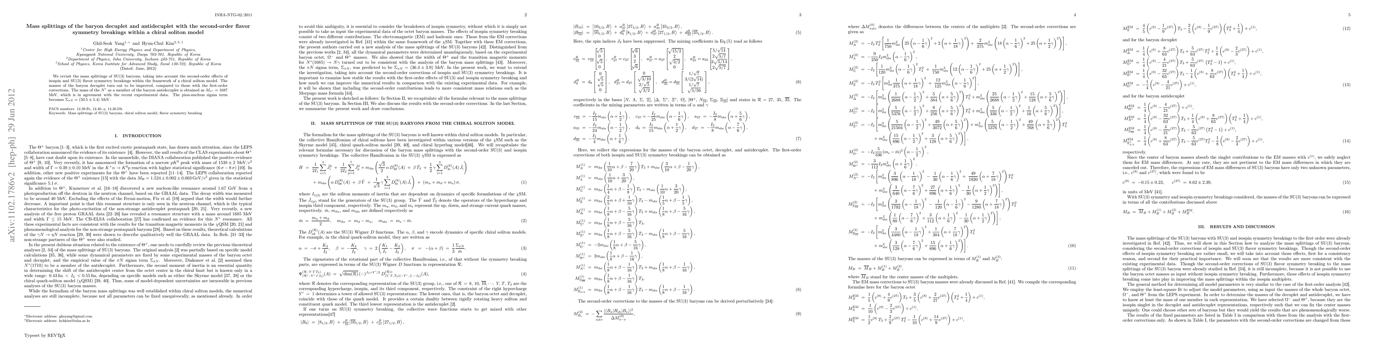 We revisit the mass splittings of SU(3) baryons, taking into account the second-order effects of isospin and SU(3) flavor symmetry breakings within the framework of a chiral soliton model. The masses of the baryon decuplet turn out to be improved, compared to those with the first-order corrections. The mass of the N^* as a member of the baryon antidecuplet is obtained as M_{n^*}=1687 MeV, which is in agreement with the recent experimental data. The pion-nucleon sigma term becomes \Sigma_{\pi N}=(50.5\pm 5.4) MeV.