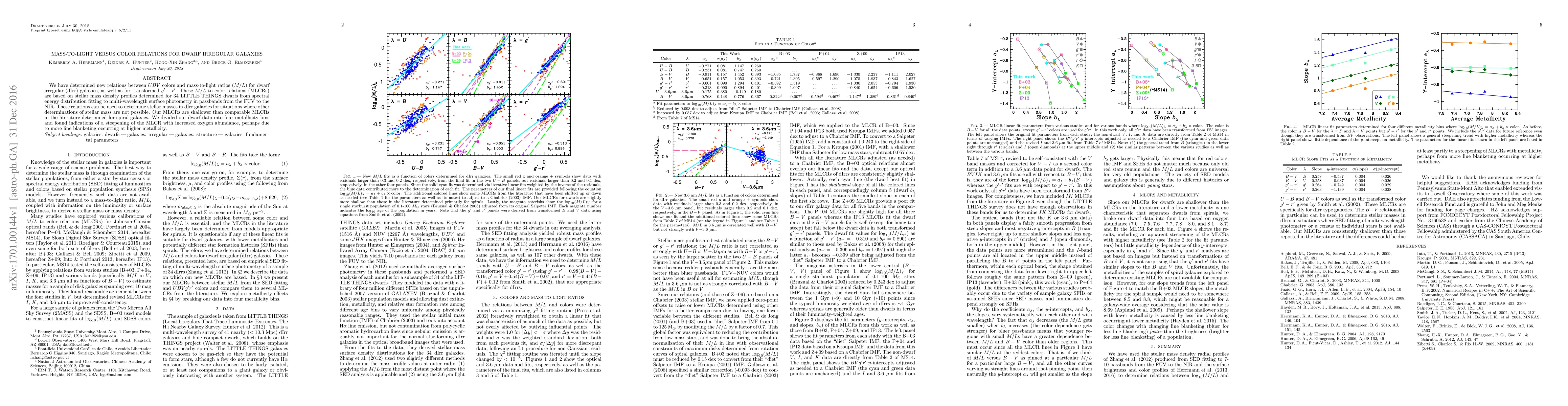 This study presents new Mass-to-Light versus Color Relations (MLCRs) for dwarf irregular galaxies, derived from stellar mass density profiles of 34 LITTLE THINGS dwarfs. These relations, based on multi-wavelength surface photometry, are shallower than those for spiral galaxies and show a possible steepening with increased metallicity, suggesting a role of line blanketing at higher metallicities.