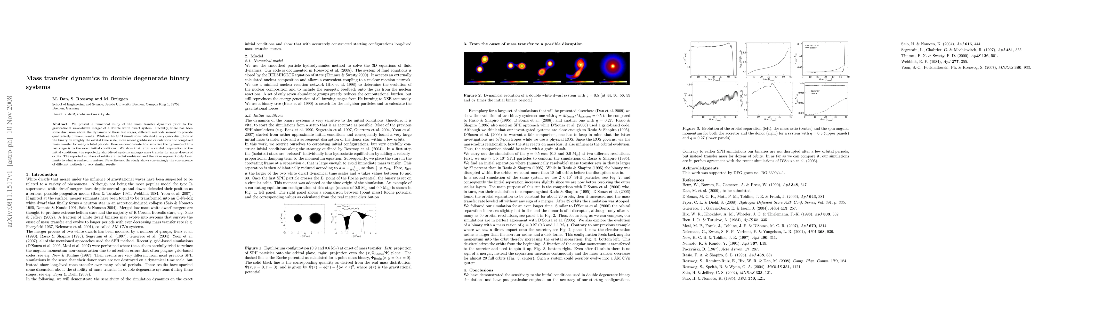 This paper investigates the mass transfer dynamics in double degenerate binary systems before their gravitational wave-driven merger, revealing that initial conditions significantly influence the duration of mass transfer. The study finds that with proper initial setup, systems previously thought to disrupt quickly can sustain mass transfer for many orbits, highlighting the resolution-dependent nature of earlier results.