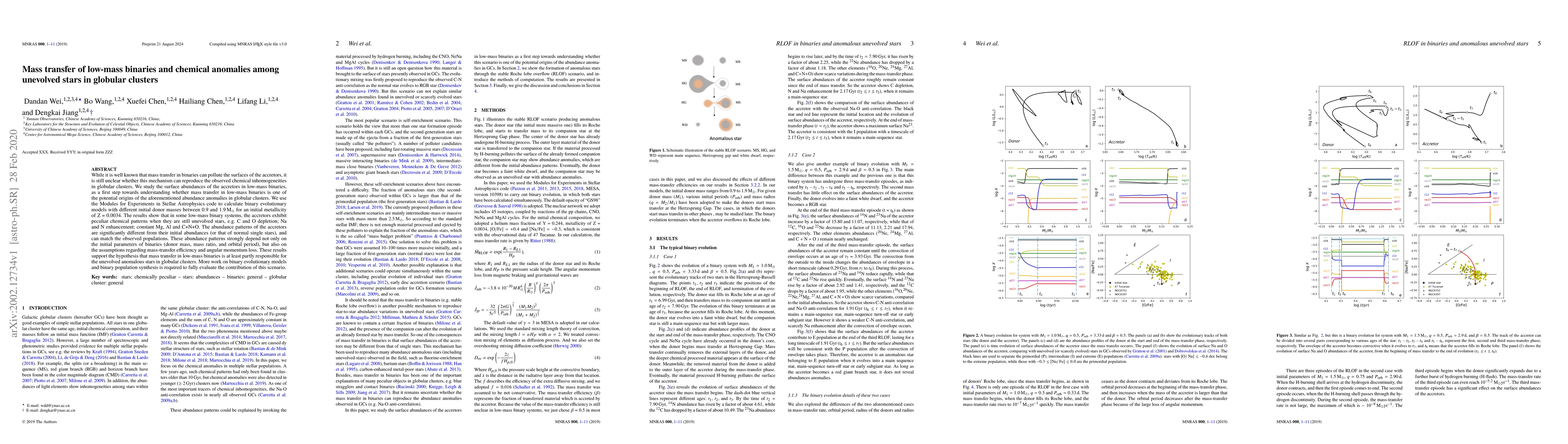 This research investigates whether mass transfer in low-mass binaries can explain the chemical anomalies observed in unevolved stars within globular clusters. The study finds that accretors in these binaries exhibit peculiar chemical patterns, supporting the hypothesis that such mass transfer processes may contribute to the observed abundance anomalies.
