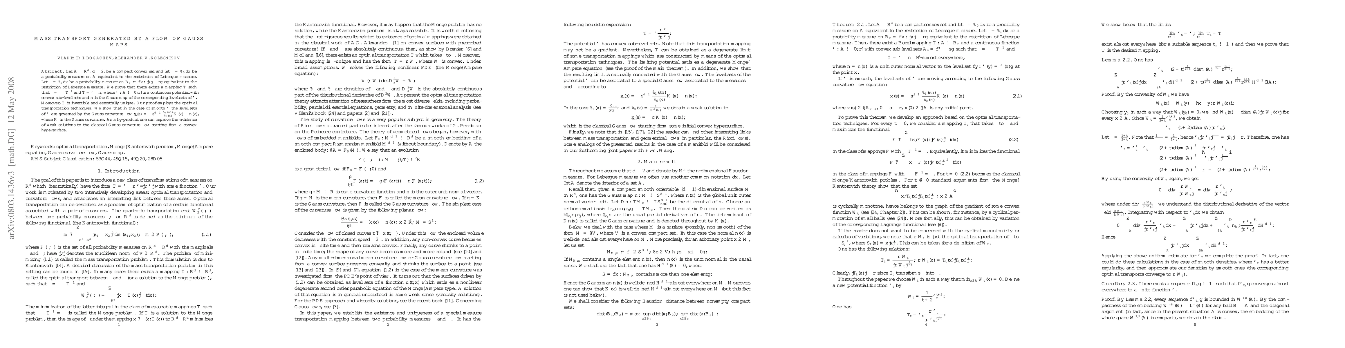 Let $A \subset \mathbb{R}^d$, $d\ge 2$, be a compact convex set and let $\mu = \varrho_0 dx$ be a probability measure on $A$ equivalent to the restriction of Lebesgue measure. Let $\nu = \varrho_1 dx$ be a probability measure on $B_r := \{x\colon |x| \le r\}$ equivalent to the restriction of Lebesgue measure. We prove that there exists a mapping $T$ such that $\nu = \mu \circ T^{-1}$ and $T = \phi \cdot {\rm n}$, where $\phi\colon A \to [0,r]$ is a continuous potential with convex sub-level sets and ${\rm n}$ is the Gauss map of the corresponding level sets of $\phi$. Moreover, $T$ is invertible and essentially unique. Our proof employs the optimal transportation techniques. We show that in the case of smooth $\phi$ the level sets of $\phi$ are driven by the Gauss curvature flow $\dot{x}(s) = -s^{d-1} \frac{\varrho_1(s {\rm n})}{\varrho_0(x)} K(x) \cdot {\rm n}(x)$, where $K$ is the Gauss curvature. As a by-product one can reprove the existence of weak solutions of the classical Gauss curvature flow starting from a convex hypersurface.
