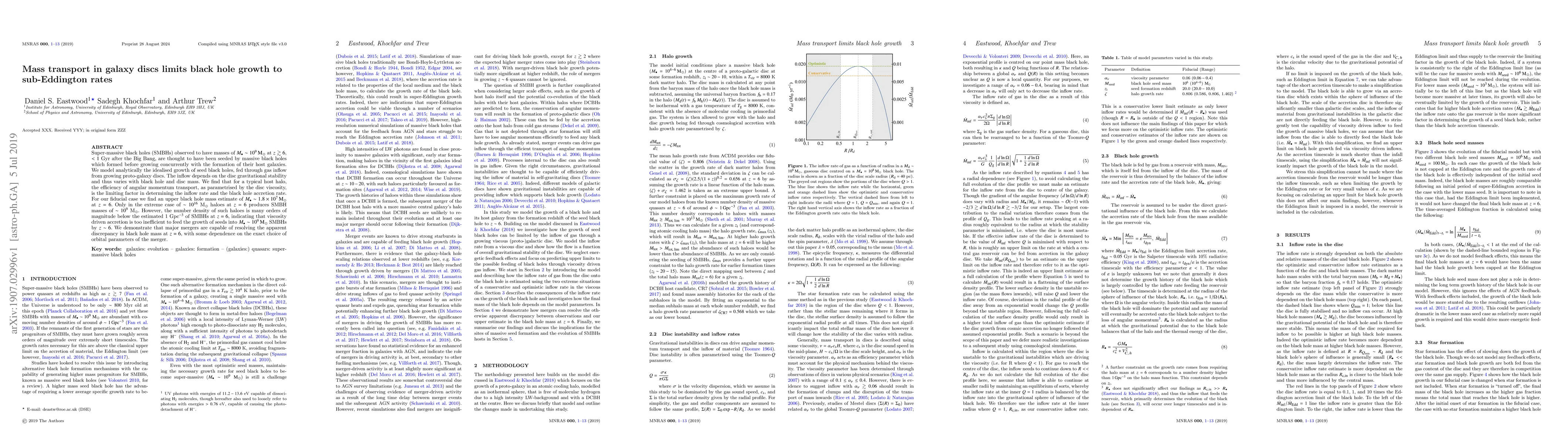 Super-massive black holes (SMBHs) observed to have masses of $M_\bullet \sim 10^9 \, \mathrm{M_\odot}$ at $z\gtrsim6$, $<1$ Gyr after the Big Bang, are thought to have been seeded by massive black holes which formed before growing concurrently with the formation of their host galaxies. We model analytically the idealised growth of seed black holes, fed through gas inflow from growing proto-galaxy discs. The inflow depends on the disc gravitational stability and thus varies with black hole and disc mass. We find that for a typical host halo, the efficiency of angular momentum transport, as parametrised by the disc viscosity, is the limiting factor in determining the inflow rate and the black hole accretion rate. For our fiducial case we find an upper black hole mass estimate of $M_\bullet \sim 1.8 \times 10^7 \, \mathrm{M_{\odot}}$ at $z=6$. Only in the extreme case of $\sim 10^{16}$ M$_{\odot}$ haloes at $z=6$ produces SMBH masses of $\sim 10^9$ M$_{\odot}$. However, the number density of such haloes is many orders of magnitude below the estimated 1 Gpc$^{-3}$ of SMBHs at $z=6$, indicating that viscosity driven accretion is too inefficient to feed the growth of seeds into $M_\bullet \sim 10^9 \, \mathrm{M_\odot}$ SMBHs by $z \sim 6$. We demonstrate that major mergers are capable of resolving the apparent discrepancy in black hole mass at $z=6$, with some dependence on the exact choice of orbital parameters of the merger.