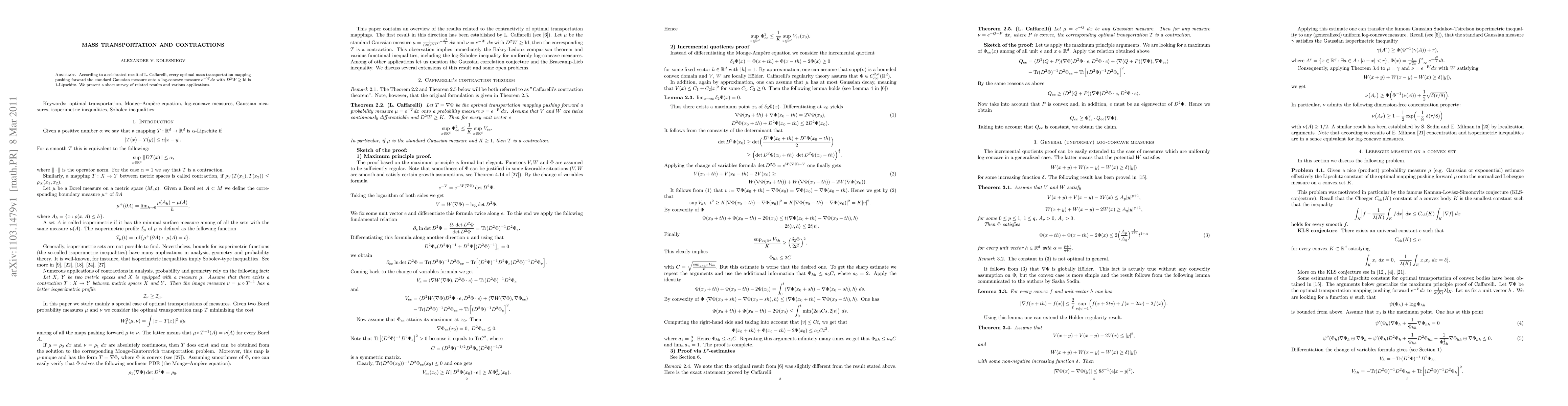 According to a celebrated result of L. Caffarelli, every optimal mass transportation mapping pushing forward the standard Gaussian measure onto a log-concave measure $e^{-W} dx$ with $D^2 W \ge {Id}$ is 1-Lipschitz. We present a short survey of related results and various applications.