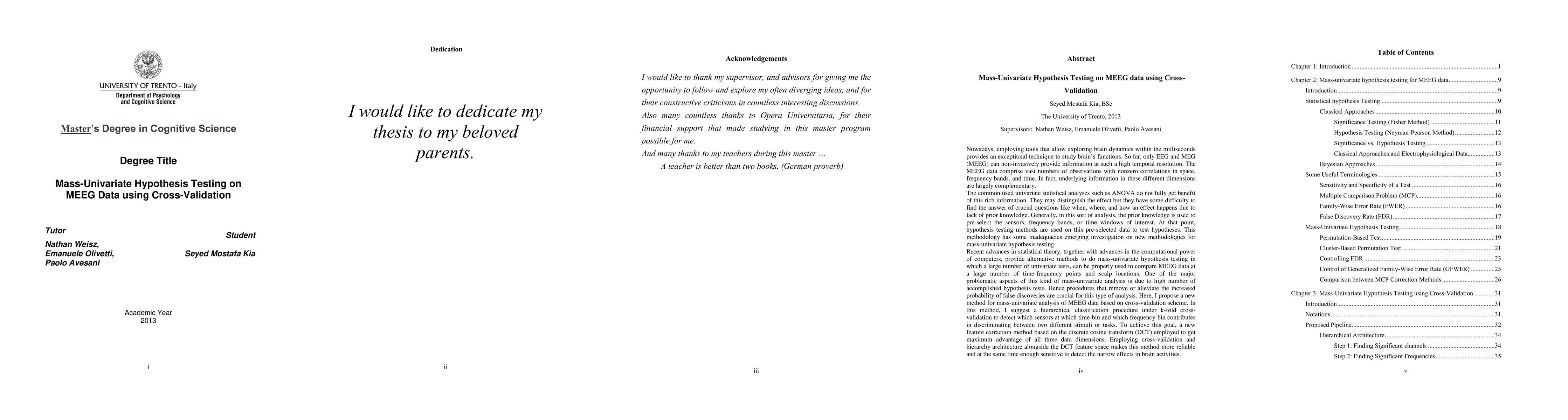 This paper proposes a novel mass-univariate analysis method for MEEG data using cross-validation and hierarchical classification to mitigate false discoveries. It employs discrete cosine transform for feature extraction and k-fold cross-validation to identify discriminative time-frequency points and scalp locations.
