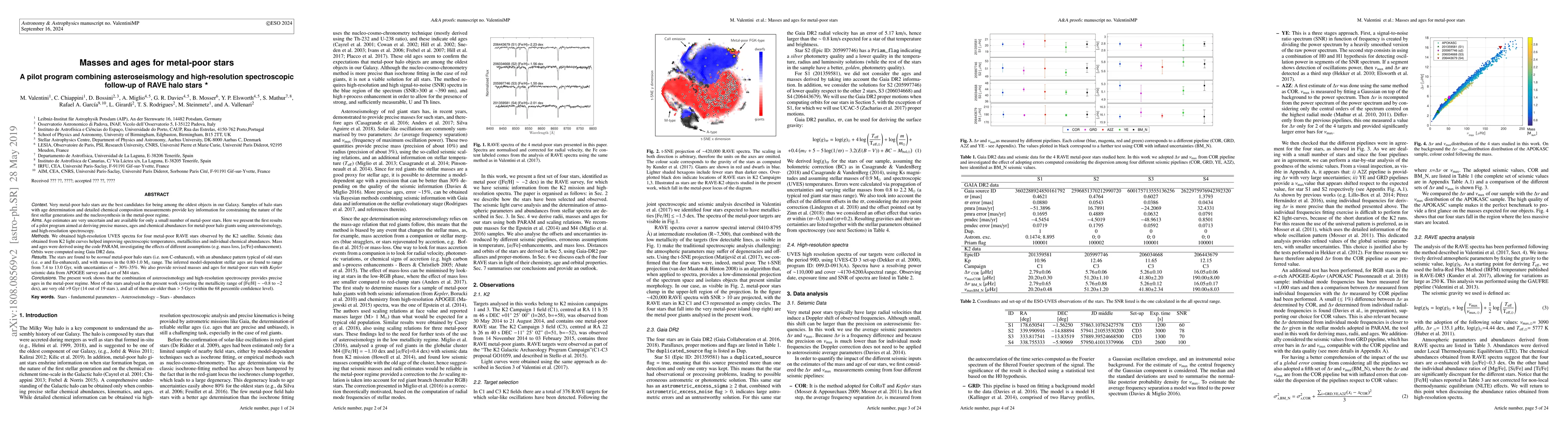 Very metal-poor halo stars are the best candidates for being among the oldest objects in our Galaxy. Samples of halo stars with age determination and detailed chemical composition measurements provide key information for constraining the nature of the first stellar generations and the nucleosynthesis in the metal-poor regime.} Age estimates are very uncertain and are available for only a small number of metal-poor stars. Here we present the first results of a pilot program aimed at deriving precise masses, ages and chemical abundances for metal-poor halo giants using asteroseismology, and high-resolution spectroscopy. We obtained high-resolution UVES spectra for four metal-poor RAVE stars observed by the K2 satellite. Seismic data obtained from K2 light curves helped improving spectroscopic temperatures, metallicities and individual chemical abundances. Mass and ages were derived using the code PARAM, investigating the effects of different assumptions (e.g. mass loss, [alpha/Fe]-enhancement). Orbits were computed using Gaia DR2 data. {The stars are found to be "normal" metal-poor halo stars (i.e. non C-enhanced), with an abundance pattern typical of old stars (i.e. alpha and Eu-enhanced), and with masses in the 0.80-1.0 M_sun range. The inferred model-dependent stellar ages are found to range from 7.4 to 13.0 Gyr, with uncertainties of ~ 30%-35%. We also provide revised masses and ages for metal-poor stars with Kepler seismic data from APOGEE survey and a set of M4 stars. {The present work shows that the combination of asteroseismology and high-resolution spectroscopy provides precise ages in the metal-poor regime. Most of the stars analysed in the present work (covering the metallicity range of [Fe/H] ~ -0.8 to -2 dex), are very old >9 Gyr (14 out of 19 stars ), and all of them are older than > 5 Gyr (within the 68 percentile confidence level).