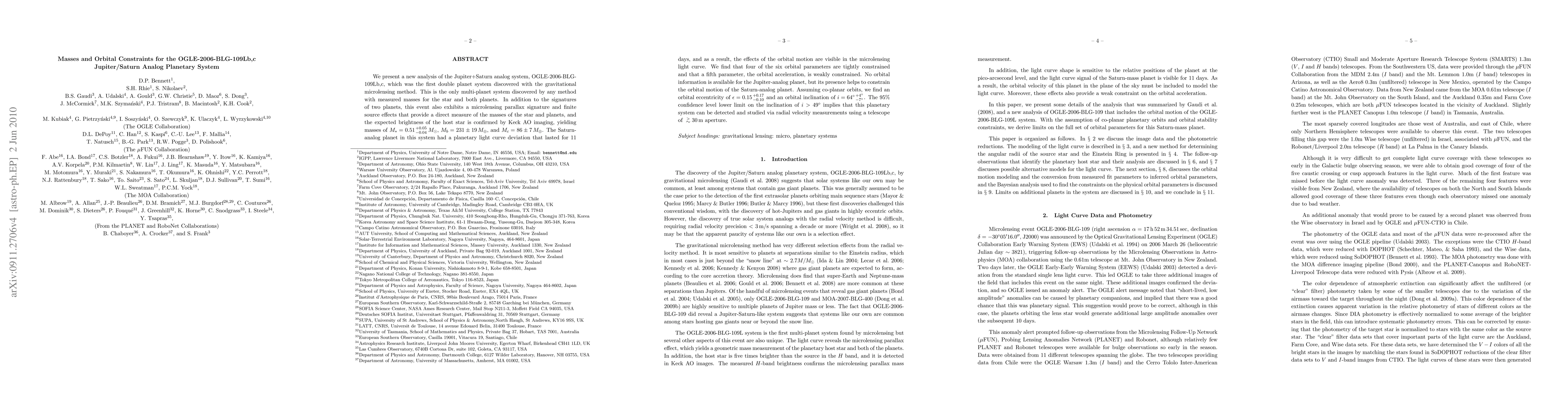 This research presents a reanalysis of the OGLE-2006-BLG-109Lb,c system, the first double planet system discovered via microlensing. It confirms masses for the star (0.51 M_sun) and both planets (M_b = 231 M_earth, M_c = 86 M_earth), using microlensing parallax, finite source effects, and Keck AO imaging. Four orbital parameters are tightly constrained, with an eccentricity of 0.15 and an inclination of 64 degrees. The Jupiter-analog's presence aids in constraining the Saturn-analog's orbit, suggesting potential for radial velocity detection with >30m aperture telescopes.