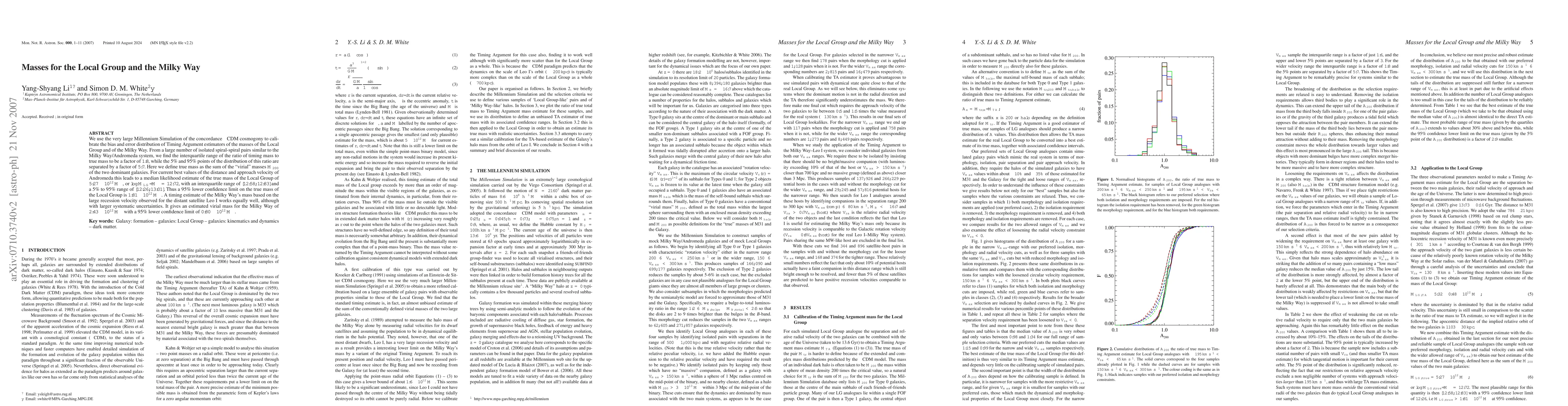 This paper uses the Millennium Simulation to calibrate mass estimators for the Local Group and the Milky Way, finding a median true mass for the Local Group of $5.27 \times 10^{12}\msun$ and for the Milky Way of $2.43 \times 10^{12}\msun$, with significant uncertainties.