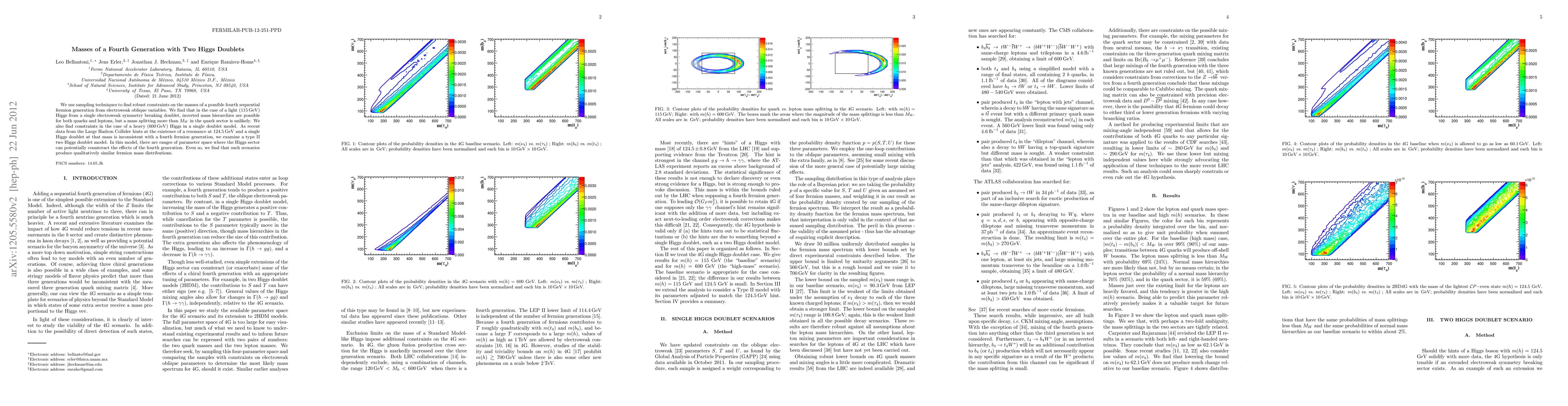 This paper uses sampling techniques to constrain the masses of a potential fourth fermion generation under different Higgs scenarios. It finds that while inverted mass hierarchies are possible, significant mass splittings are unlikely, and a two Higgs doublet model can mitigate some effects but does not drastically alter fermion mass distributions.